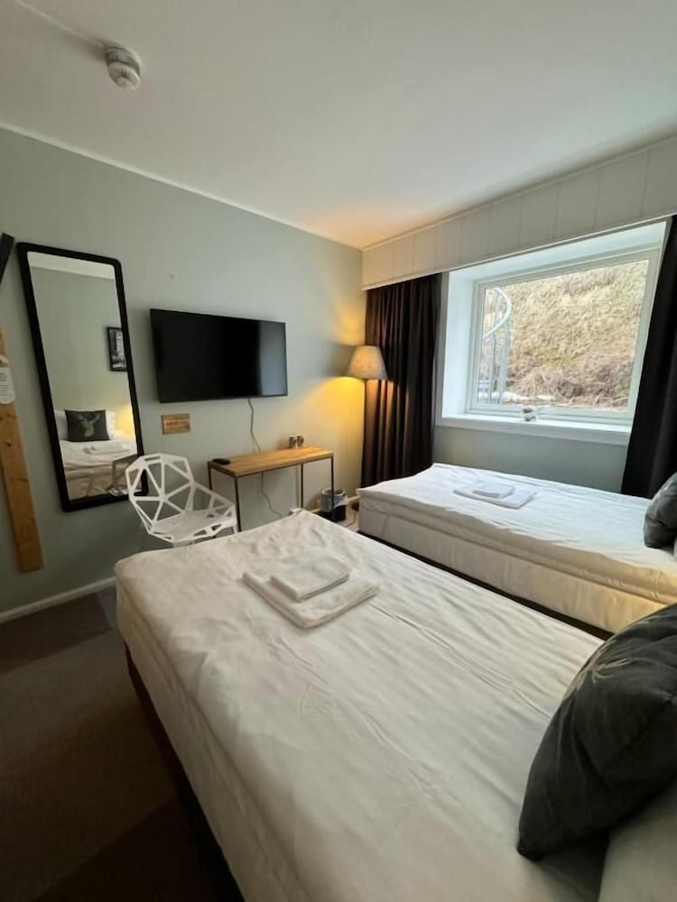 Pænt værelse og badeværelse. Beliggende i Honningsvåg, ca. 30 km fra Nordkap. Rigtig fin morgenmadsbuffet. Der er også en udmærket restaurant på hotellet med god mad.