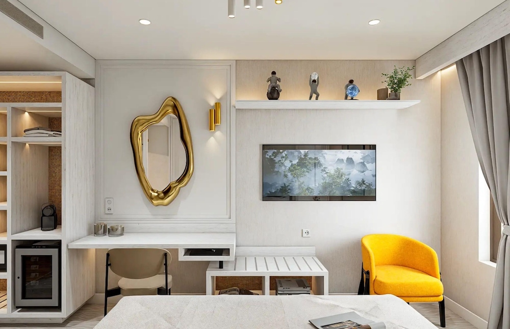 Settle into one of our 53 uniquely decorated guestrooms, featuring premium bedding, complimentary minibars, and flat-screen televisions. Every detail is designed for your utmost comfort and convenience.