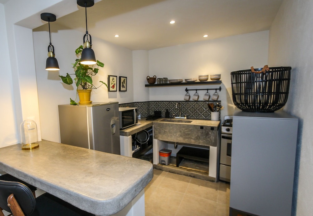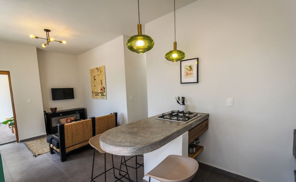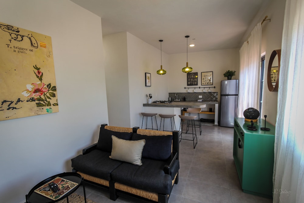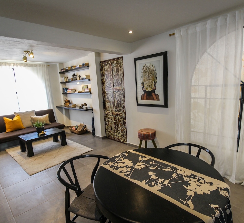 Algo que tal vez pudieran mejorar sería más iluminación en el patio y escaleras además que la casita no cuenta con aire acondicionado y tal vez un sillón un poco más cómodo sin embargo en general muy bien. La atención y detalles que tienen nos gustó mucho. Definitivamente si la recomendamos