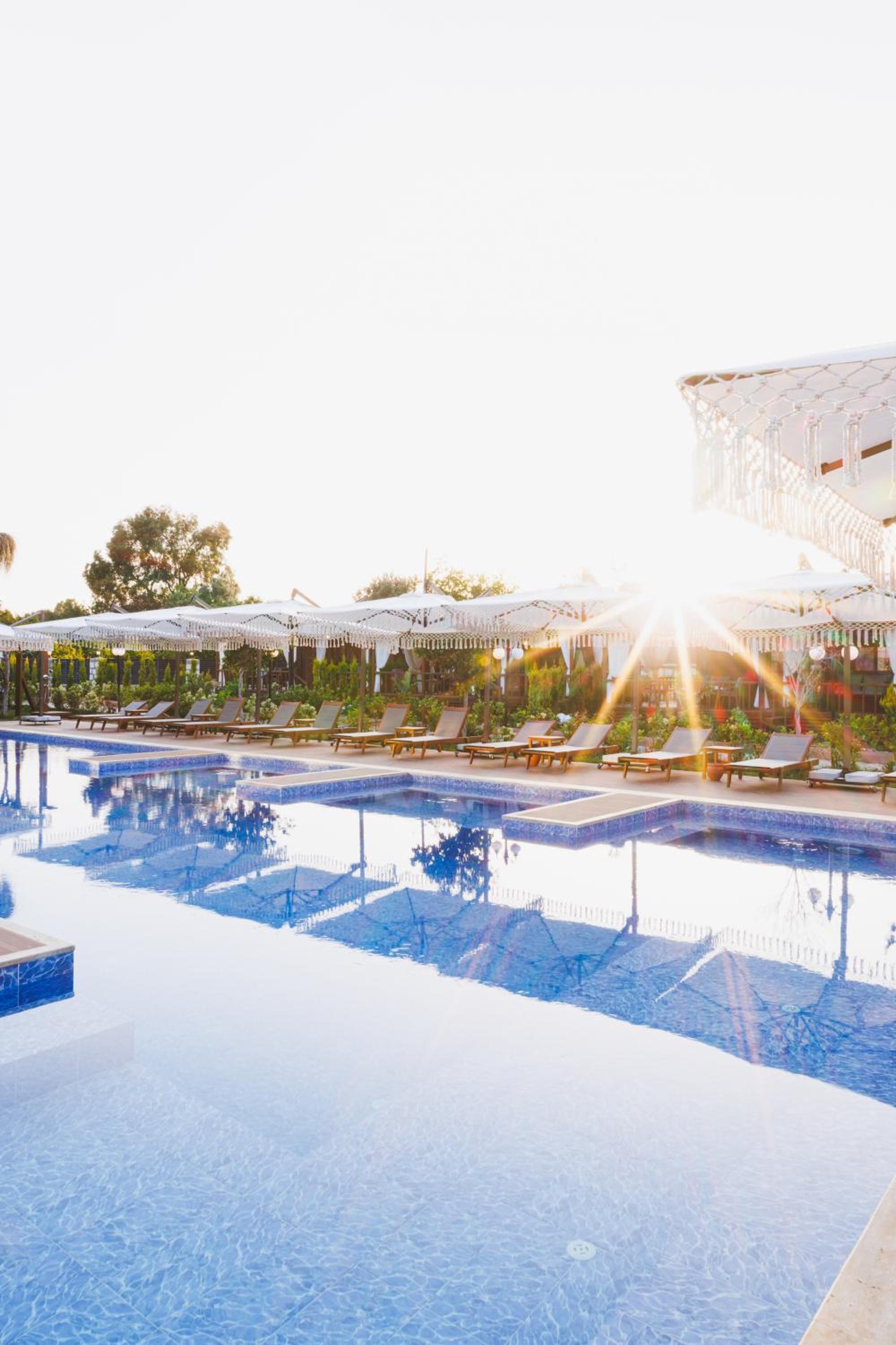 Unwind in our seasonal outdoor swimming pool surrounded by lush gardens, perfect for soaking up the sun or enjoying a leisurely swim.
