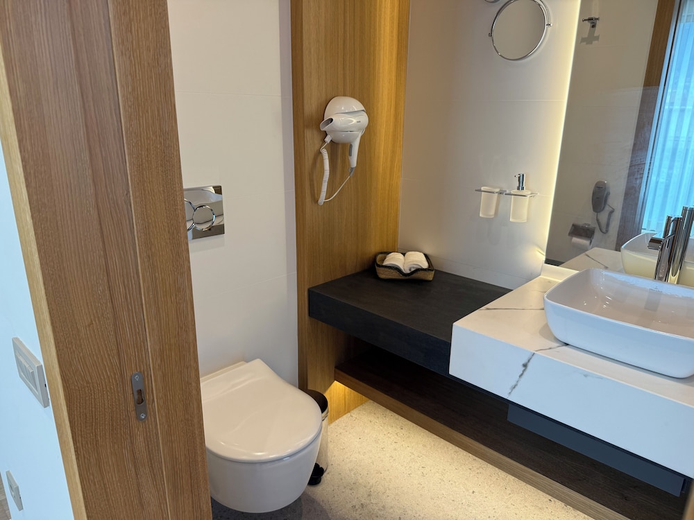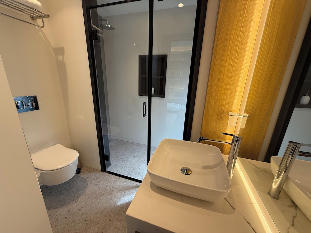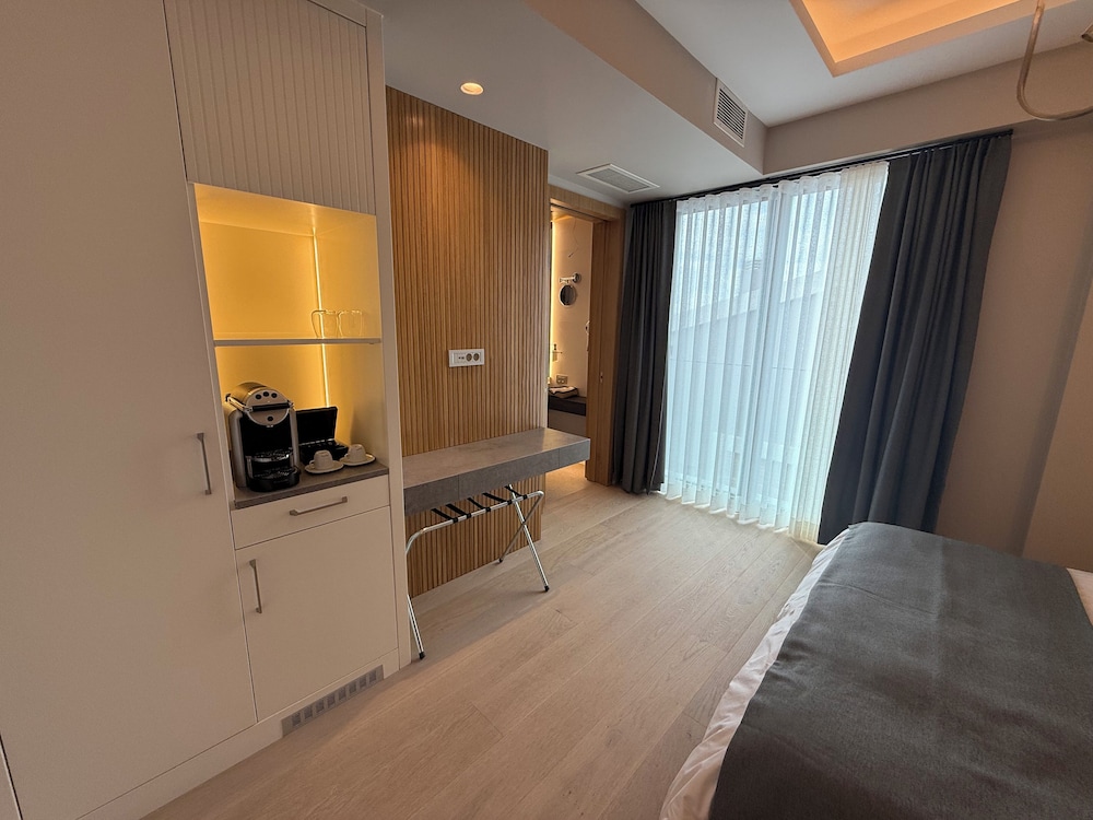 Arkadaşımla Deniz kuvvetleri tesisindeki bir düğün sonrası kalmak için iki tek yataklı odayı kiraladık. Konum mükemmel, deniz kenarı, nezih, rakı balık deniz ürünleri restoranları ve birçok kafe var. resepsiyonda karşılama anından itibaren çok nazik ve ilgiliydiler. Otel cok temiz ve henüz cok yeni,bu sebeple pek yorum da bulamamıştım hatta Odada ilk kalan misafirler bizmişiz, odanın cok tatlı bir terası var, orada sandalyeleri vardı. Yataklar ve dolaplar odanın sağı ve solu bölünmüş şekilde oldugu için kendinize ait bir alan oluşuyor ve bu tasarımı cok sevdim. Banyo da cok güzeldi. Diş fırça-macun, terlikler , şampuan dahil herşey vardı. Yataklar rahattı. Odada mini buzdolabı ve içinde ikram su var. Ayrıca kapsül espresso makinesi ve ikram kafeinli- kafeinsiz kahveler bulunuyor. Kasa ve dolap alanları fazlasıyla yeterli. Otelin dünya mutfagı restoran ve barı var, bizim deneyimlemeye fırsatımız olmadı fakat deniz kenarına sadece yemek için bile gelinebilir tasarımda. otel denize sıfır, arkadaşımla gece sahil boyu yürüyüş yaptık , oda kartı ile dış kapı açılıyor, resepsiyon gece kapalı fakat güvenlik var. Ayrıca arabamı da otelin önüne park ettim, vale veya ücret yok. Hatta arabam ayrılış yaptıgım gün arkadaşlarla o çevrede takıldıgımız için orada kaldı, hiç problem yapmadılar. Genel olarak hiç beklemediğim derecede iyi bir deneyim yaşadım. Tek negatif yorumum yastıklar benim için yüksek geldi ama değiştirmek için saat cok geç oldugu için talepte bulunmadım.