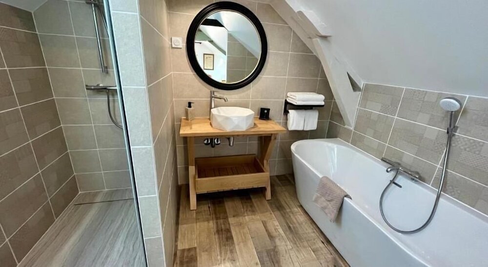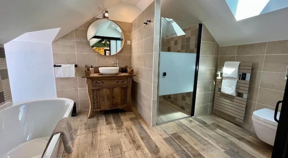 Halte de pur bonheur sur la route des vacances! Nos hôtes sont vraiment investis dans l’accueil des voyageurs: l’endroit est magnifique, entretenu avec soin, de magnifiques arbres fleuris vous accueillent (séjour en août)l, les bâtiments sont éclatants extérieurement et intérieurement. La chambre est spacieuse, décorée avec soin et la literie très confortable. La partie salle de bain moderne, très propre et spacieuse également.