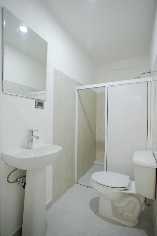 Muy pequeño en general el cuarto, baño con mínimas dimensiones, no dan jabón ni shampoo, puertas de lamina en el cuarto, puerta de aluminio con acrílico para el baño.