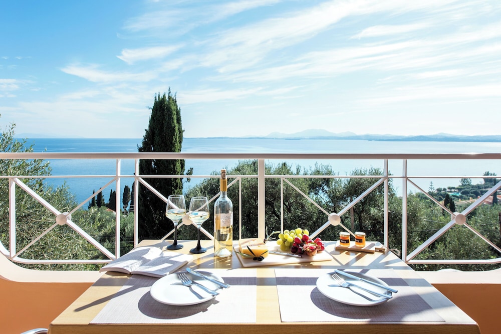 Indulge in breathtaking views right from your private balcony. The serene garden setting invites you to unwind while overlooking the sparkling Ionian Sea.