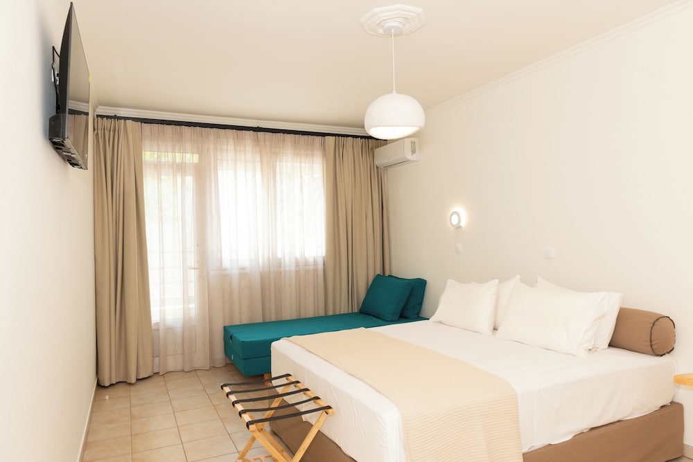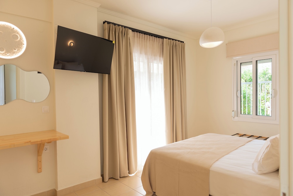 Gayet ilgili ev sahibi. Odalar yeni dekore edilmiş. Sadece banyolar yetişmemişti. Onlar da önümüzdeki sezona hazır olacakmış. Fiyatına göre mükemmel. Plaja çok yakın. Zaten adanın muhtemelen en güzel plajı. Yakında bir çok yemek alternatifi. Yunan yemekleri Türk yemeklerine çok benziyor ve güzeller. Adaya ulaşım feribotla. Bazen kuyruk olabiliyor. Ama sistem tıkır tıkır işliyor.