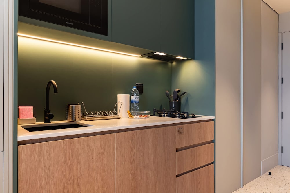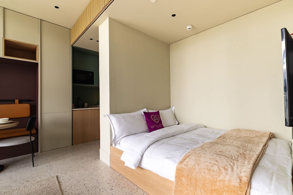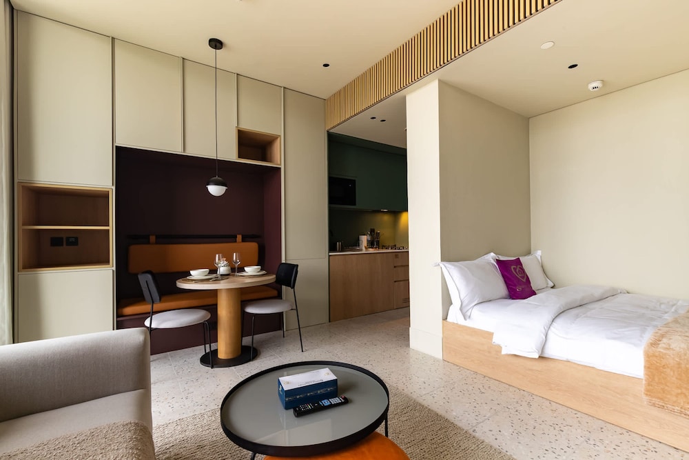 Our well-appointed studio features modern decor, a spacious balcony, and all the amenities needed for a comfortable stay, ensuring a perfect balance of style and functionality.