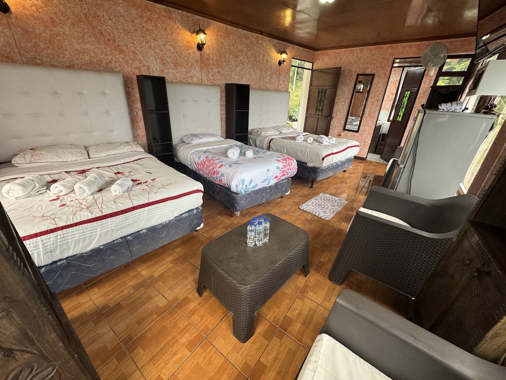 The room had holes in sheets, bugs on floor, no food or coffee on site. We had to walk a thousand stairs to get to our room with all of our luggage. Amazing view of the volcano, though with a balcony. No cushion on the seat to look at the volcano.While you're sitting on the balcony
