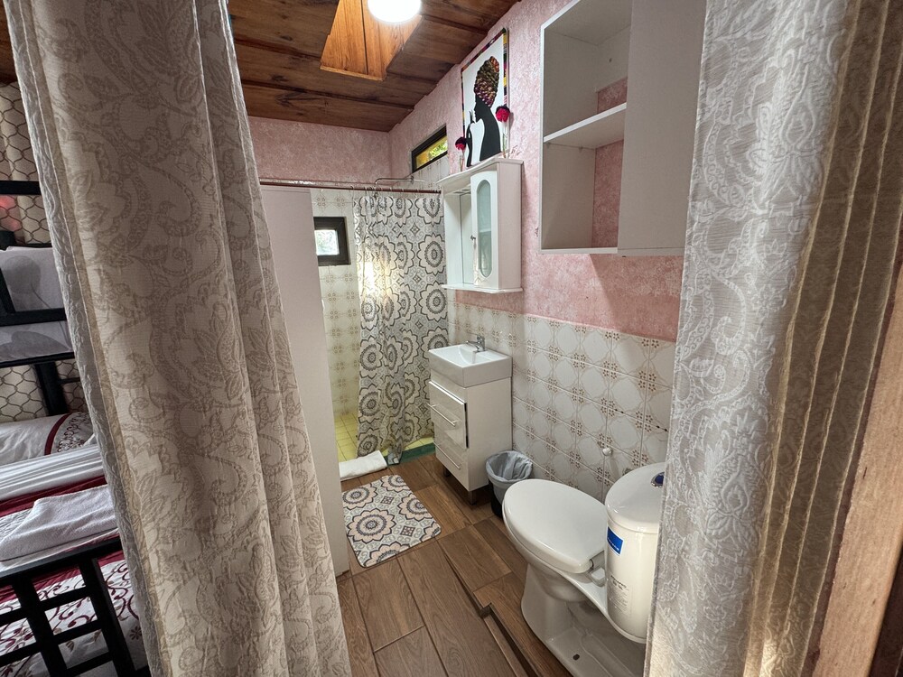 El baño extremadamente chiquito, las camas con colchones que se hacen cunas