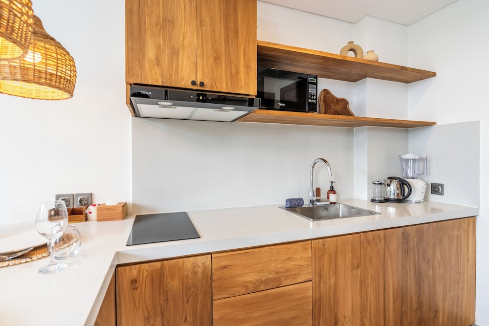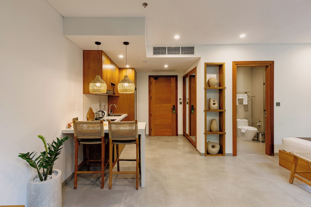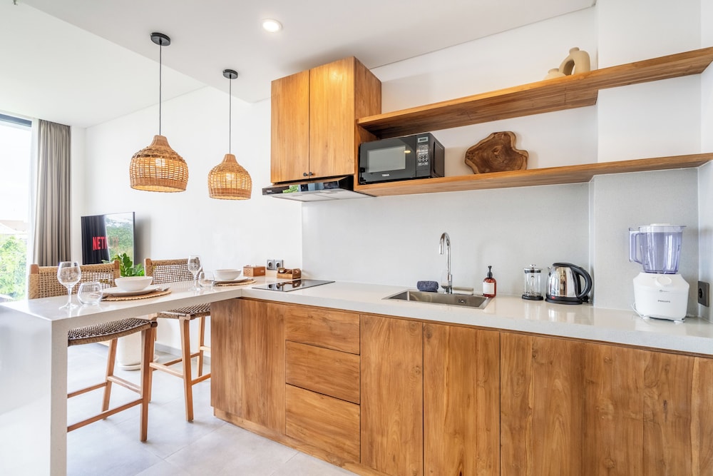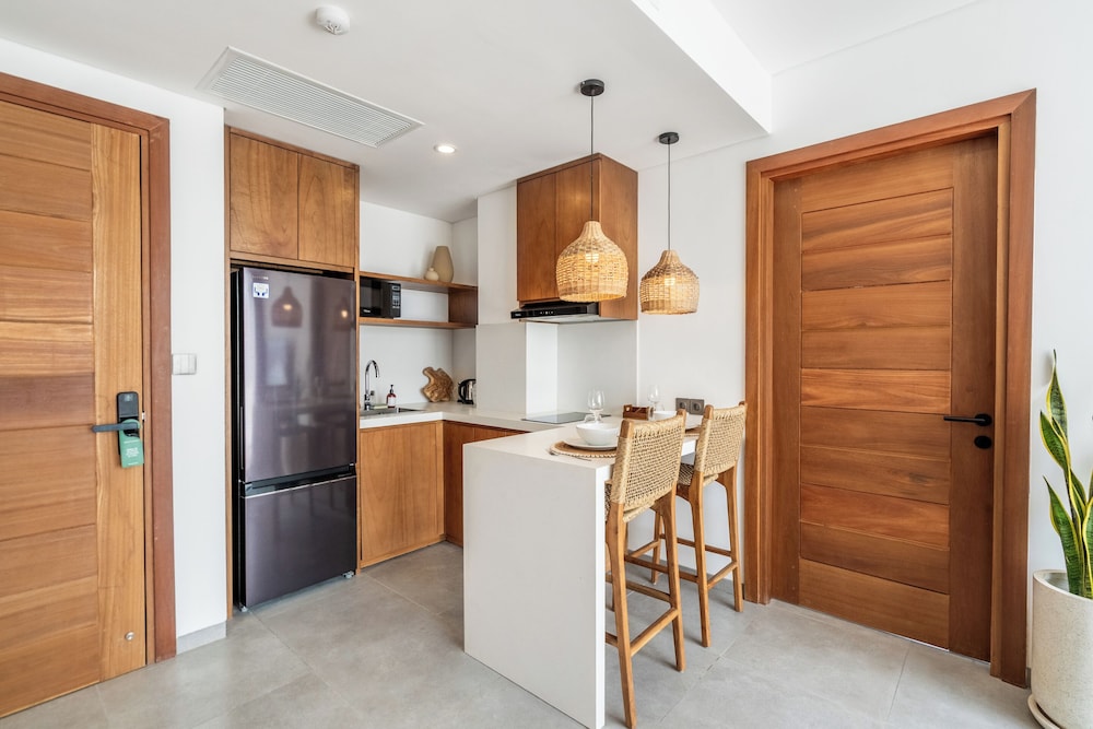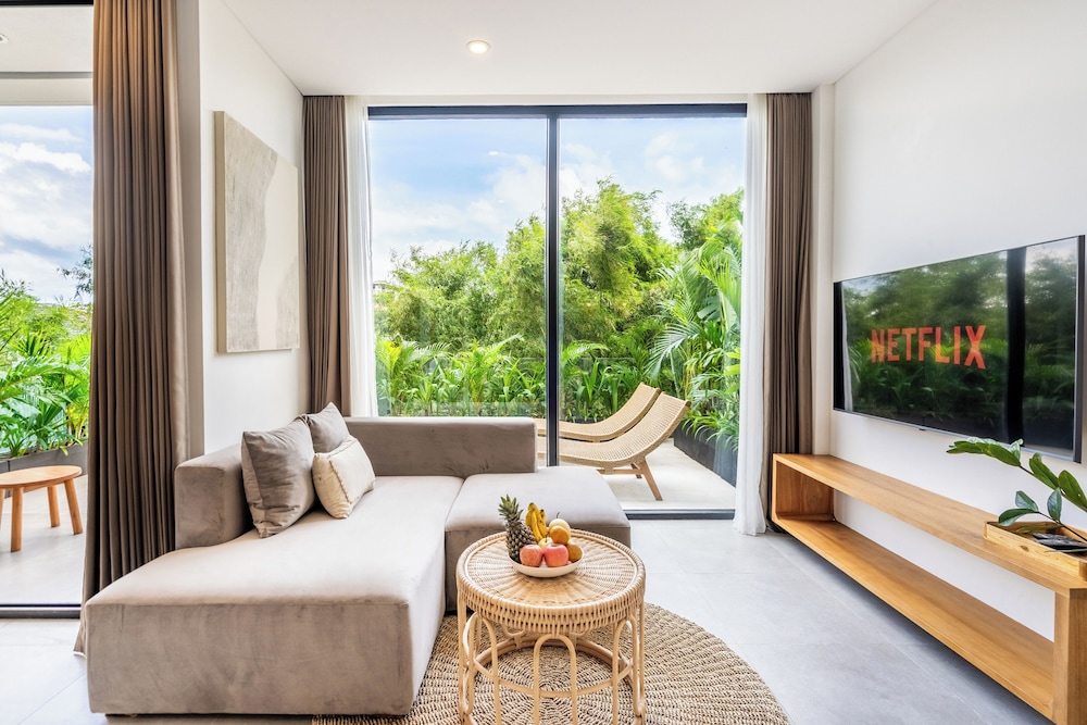 I stayed here for 5 nights in early September as a solo female traveler- I felt completed safe, comfortable, and simply happy at this beautiful and extremely well-maintained property. The grounds are extremely well-kept (pool area, lobby, rooms, hallways, etc). The staff were beyond welcoming every time you saw them, and they were always ready with a smile to help with any requests. You can tell this is a well-trained staff in hospitality! Julio at the front desk was especially helpful and always had such a warm and kind smile. He went above and beyond to make me feel welcomed and feel at home. He even offered to bring my food delivery to my room so I wouldn’t have to be bothered with coming downstairs when it arrived- so considerate! Actually, all the staff were amazing! The rooms are new, beautifully decorated, cozy, modern, and well-stocked. I even had a slight view of the ocean being on a higher floor. Everything you need in the kitchen was provided and there are multiple water machines on each floor. Location is excellent in a quieter area of Canggu and is 5 min. walking to Nelayan beach. Also, it is so close to so many restaurants, cafes, gyms, laundry, and souvenir shops as well. If I ever come back to Canggu, I will definitely be booking this place again!