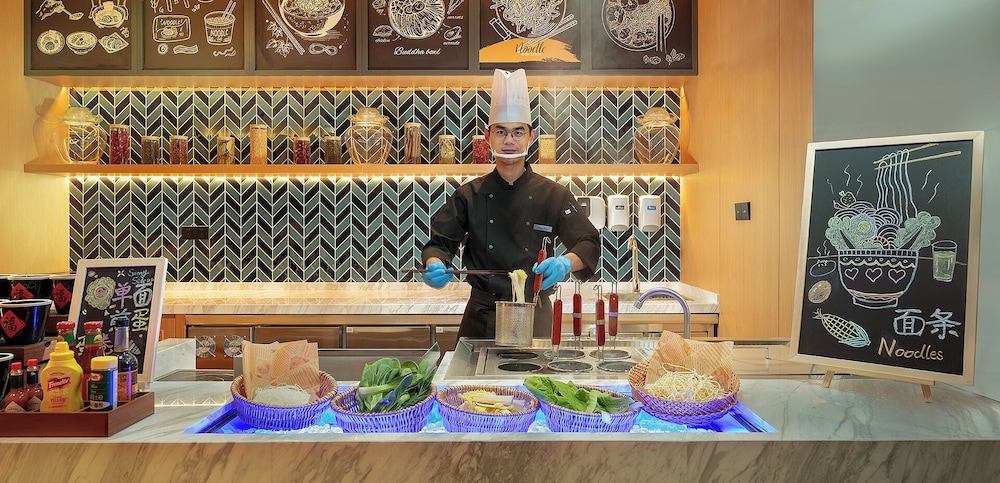Savor delightful meals at our on-site restaurant or grab a quick snack at our deli. Enjoy a complimentary breakfast for children aged 12 and younger, ensuring a perfect start to your day.