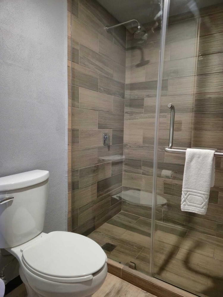 Cuando llegue no había control de la televisión, en la madrugada que entré al baño me di cuenta que la manija no estaba bien y la puerta no cerraba correctamente aún así lo cerré y me quedé atorado 2 hora y media en el baño sin celular ni gritando me hubieran encontrado hasta que fueran a ver porque no contestaba, al principio me dio un ataque de ansiedad porque no llegaba bien el oxígeno y hacía calor, después de rato me calmé intenté ver cómo poder abrir la puerta y ahí con lo que me encontré en el baño y tras varios rasguños y cortadas pude, como comenté eso fue en la madrugada por lo cual la verdad ya no quise decir nada dormí un poco y hice checkout a las 7:00 am, ahí decía que incluía un desayuno (el cual no vi nada de eso) pero en fin, el lugar está bonito, pero para entrar está horrible lleno de baches, la entrada estaba llena de piedras y hasta se me bajó una llanta me di cuenta en la mañana y pasé a que la parcharan ahí cerca había una vulcanizadora. No regresaría pero está bien el lugar.