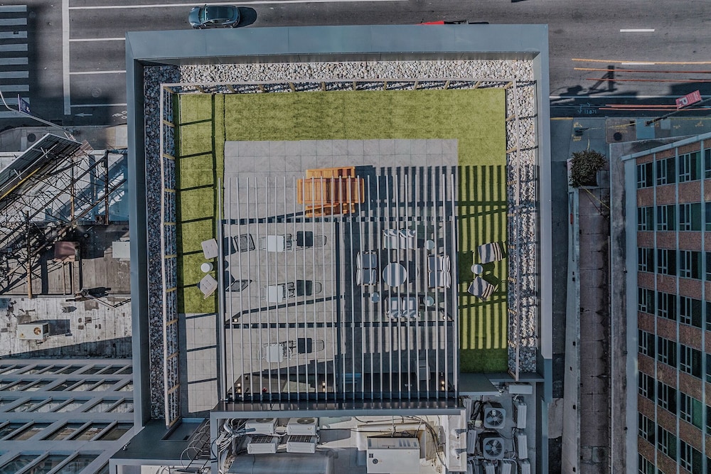 Great location. Parking next door is pretty affordable for downtown area. Great rooftop view.