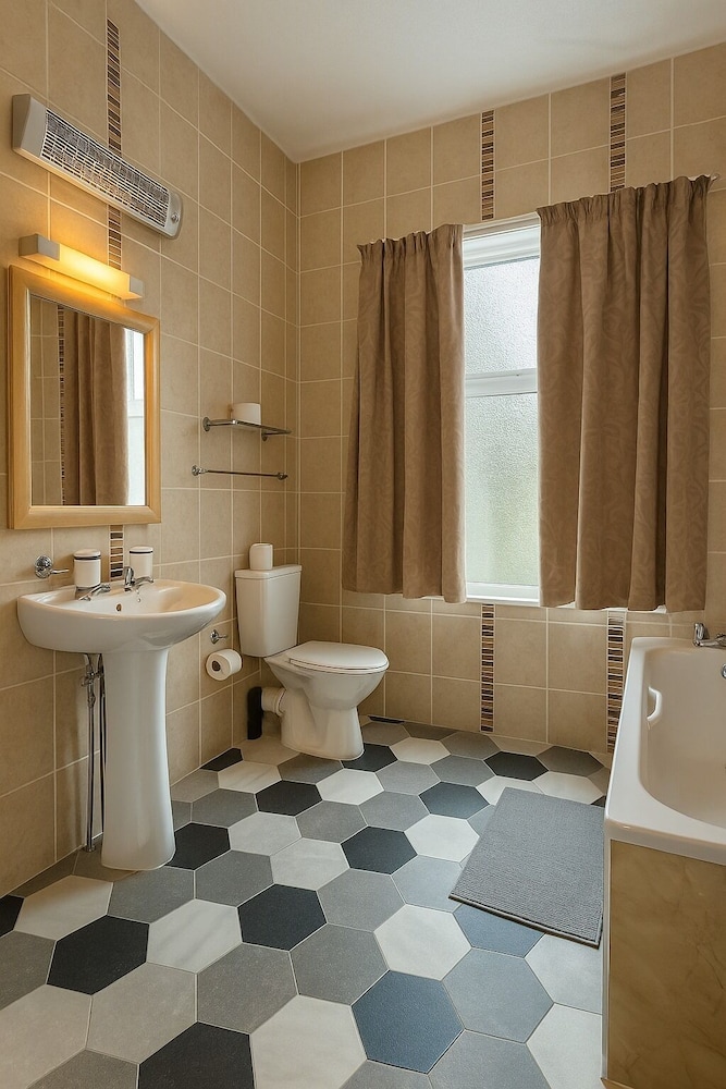 Bath had large scattered spots of paint so you certainly wouldn't bath in it. Can’t shave as there’s no plug in the sink.