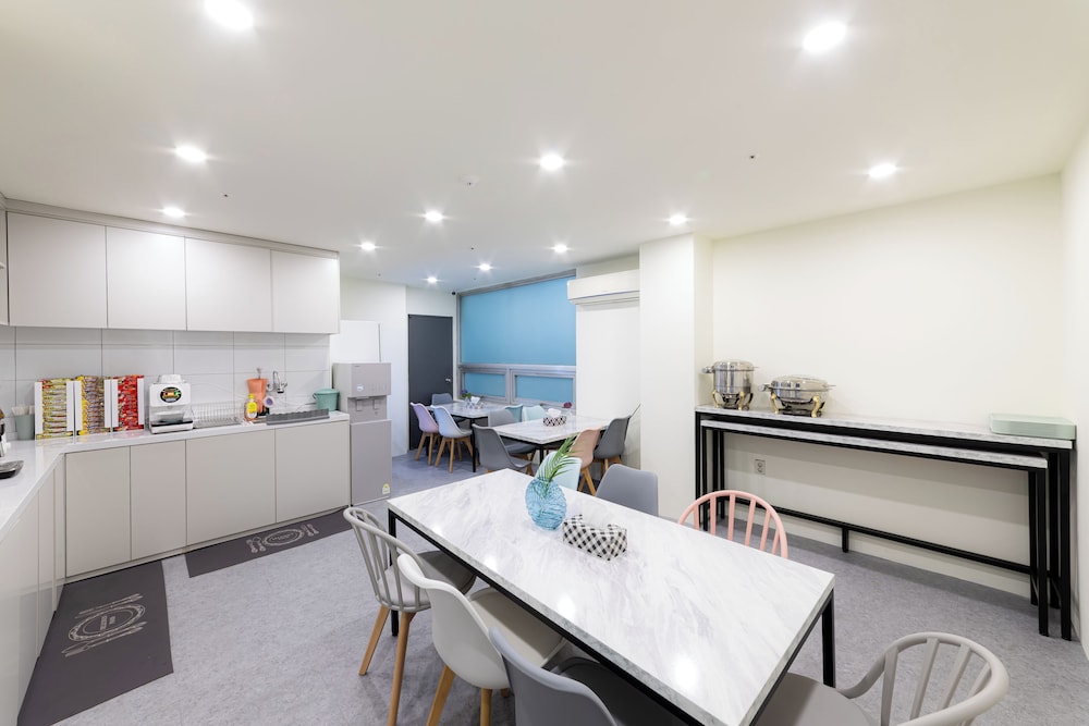 4日滞在しました。ホステルのような感じです。ホテルは清潔でシーツも新しかったです。ルームクリーニングはないとのことでしたが、毎回タオルは交換され、ゴミの回収もありました。朝ごはん付きで、パンやコーヒー、シリアル、バナナとオレンジのフルーツと牛乳、漢江ラーメンがあり美味しくいただきました。片付けは自分でするスタイルです。いつも同じ女性の方が綺麗にしてくれたり、作り方を教えてくれたり、コーヒーメーカーのメンテナンスを笑顔でしてくれて助かりました。日本語はほぼ通じませんが、なんとなく助けてくれます。他のお客さんも韓国の方はもちろん、日本人やアメリカやスペインななど様々な方がいて、気さくに挨拶できて楽しかったです。