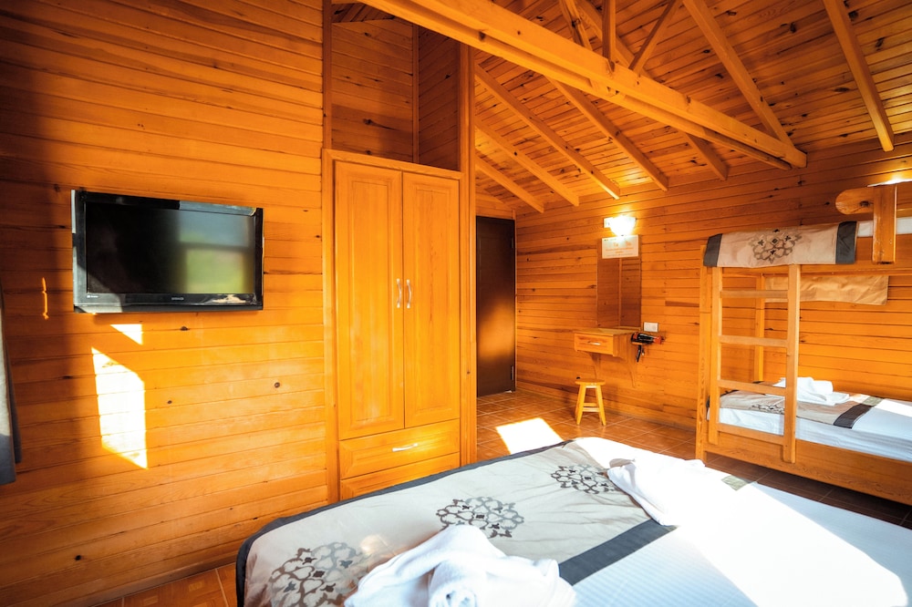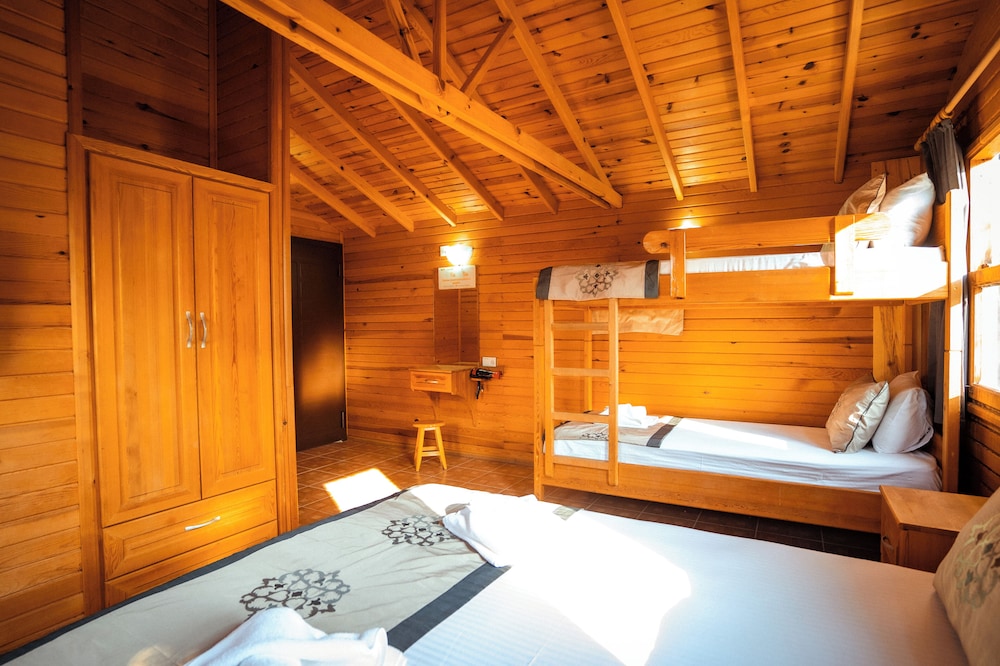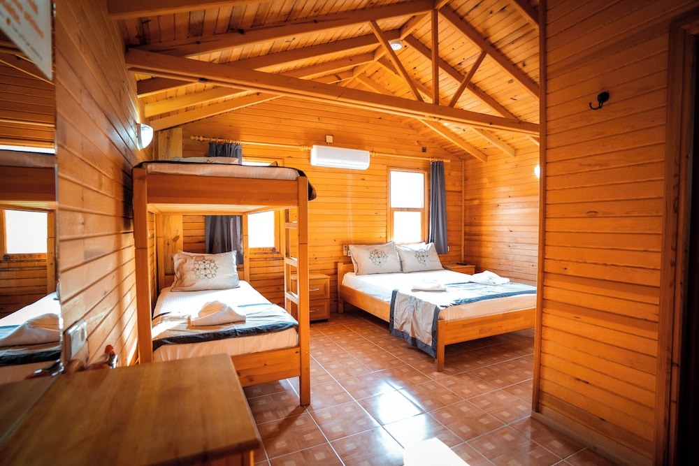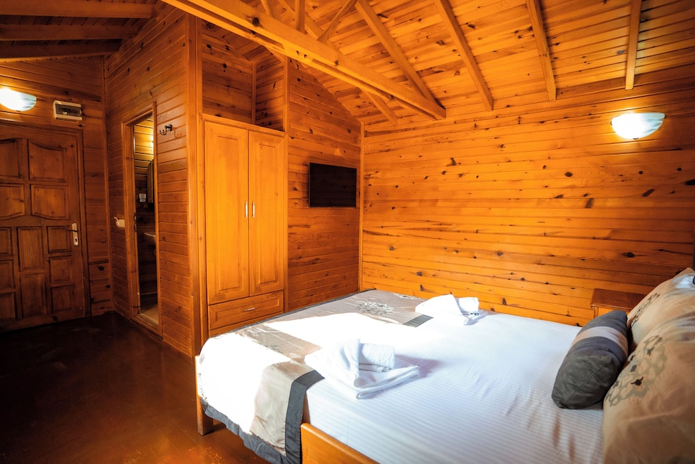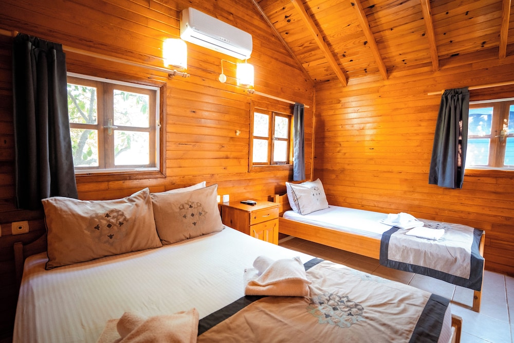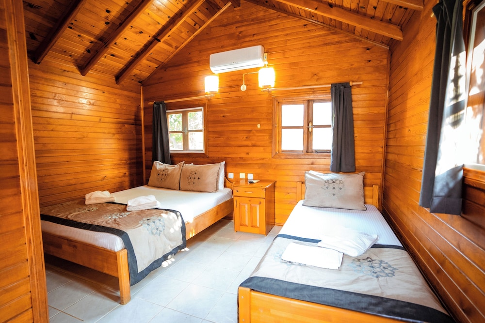 Hotels comun sitesinde seçtiğimiz odanın görseli ile alakasız bir oda verdiler, sonrasında işletmeci bayanın özverisiyle istediğimiz odaya geçtik,bungalovlar genel olarak iyi ancak buzdolabı yoktu, tv ve klima vardı, klimanın duvardaki uğultusu tüm bungalovu titretip uğultu yaptı, uyumakta zorluk çektik, kahvaltı masaya geldi kahvaltınında tek sıkıntısı yumurtalar haşlanmıştı, tavada yağda olabilir yada sorulabilirdi, konsept genel olarak güzel denize yürüme mesafesiydi