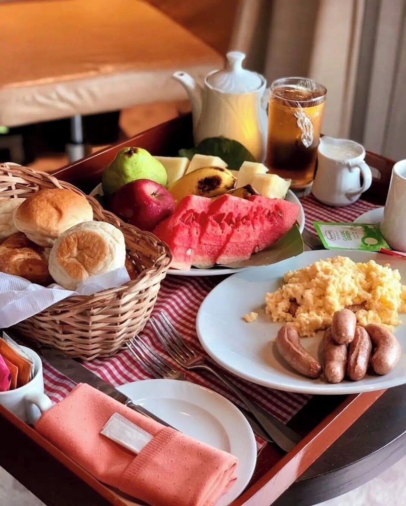 Savor a delightful complimentary English breakfast daily from 6:00 AM to 9:00 AM. For lunch or a quick snack, our on-site restaurant and coffee shop/cafe offer a variety of tasty choices to satisfy your cravings.