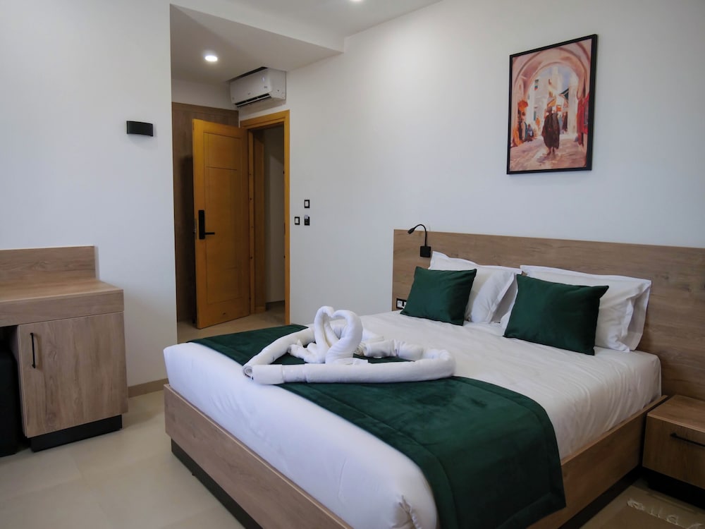 Hôtel très agréable, moderne et bien situé en plein cœur de Midoun. Les chambres sont très propres, confortables et le personnel est vraiment accueillant et serviable. Le petit-déjeuner est copieux et varié. Un ascenseur serait vraiment pratique, mais dans l’ensemble je recommande vivement cet établissement.