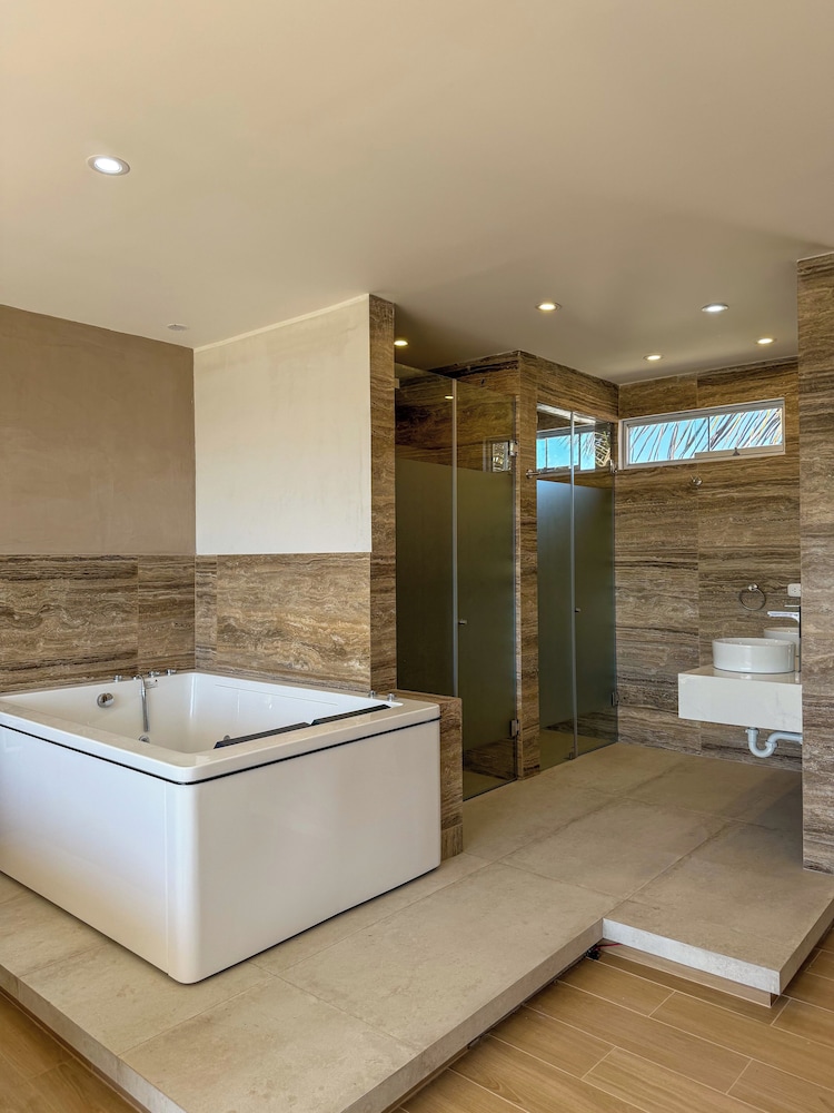 The rooms are very nicely tiled - impressive! The sea view windows and balcony with table and chairs were perfect. The kayak opportunity was a nice surprise and we loved walking along the beach to see the nice homes. We appreciated the pisco sours, poolside dinner and breakfast. A short taxi to the paracas boat ride and lunch places, thanks to front desk for arranging this for us. Only downside was there was no jacuzzi near the pool.
