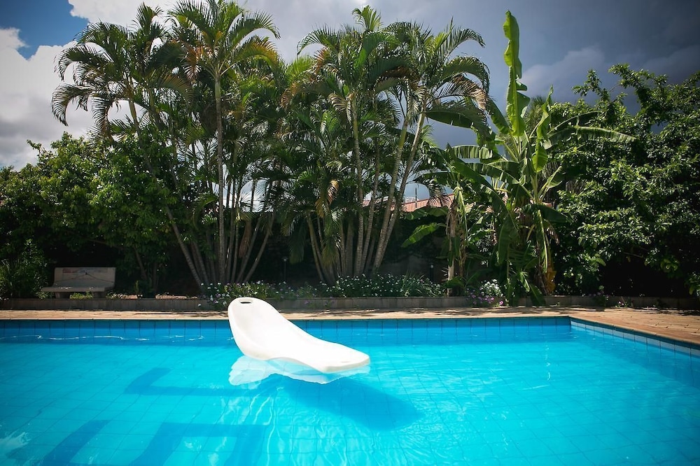 Gostamos da poscina, mas não tem cadeiras, nem guarda sol, se quiser semtar é na mureta do canteiro ou no chão quente.