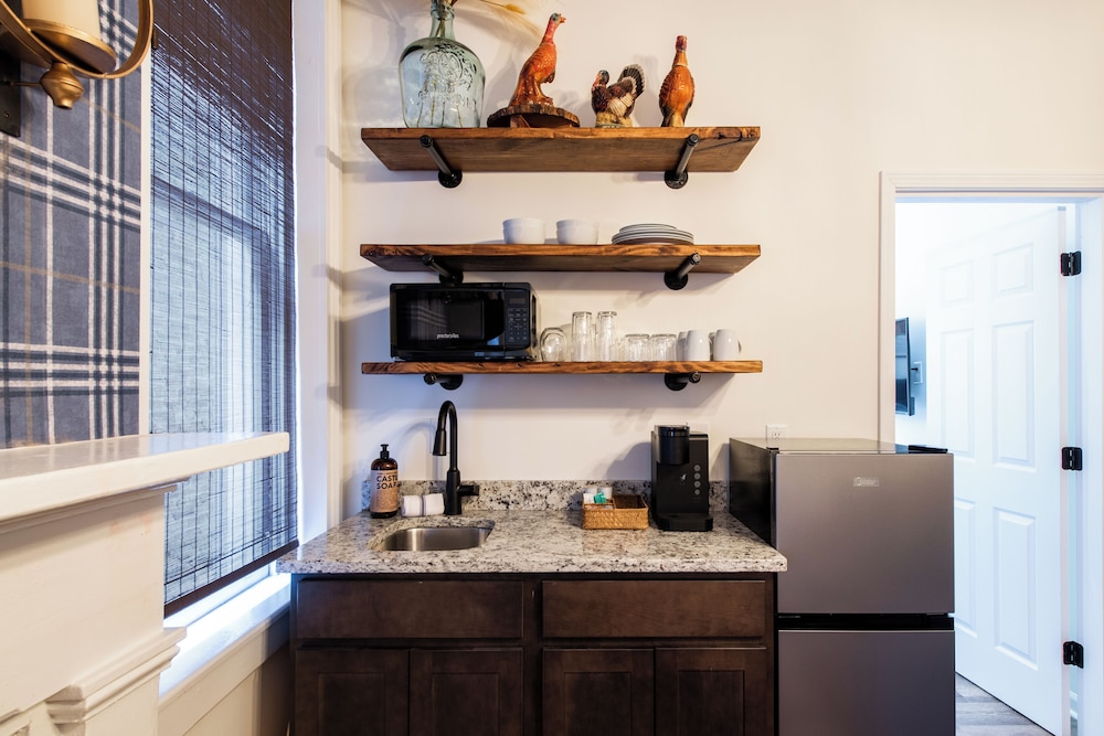 Relax in one of our eight spacious guestrooms, featuring microwaves for easy dining, and bathrooms equipped with complimentary toiletries and hair dryers to make your stay as pleasant as possible.