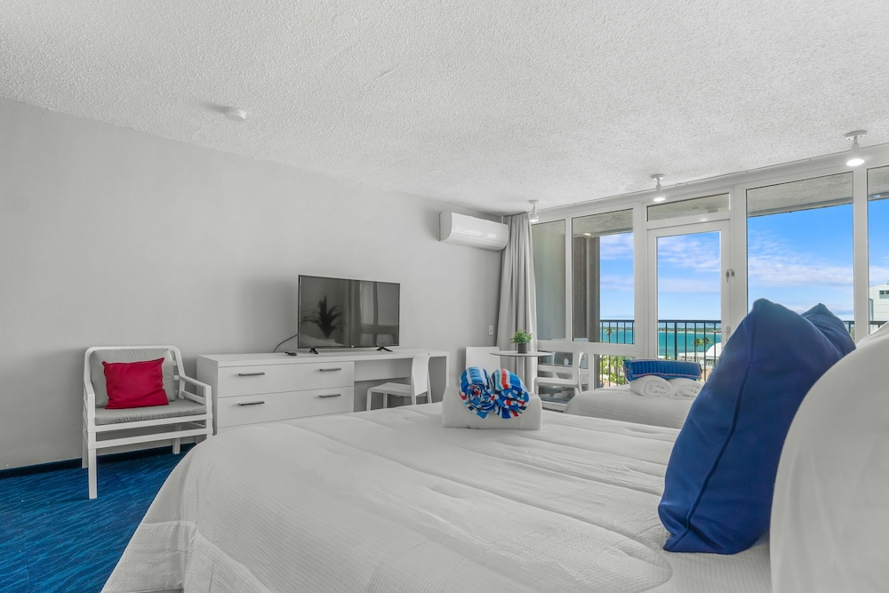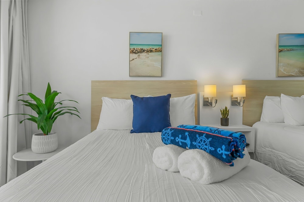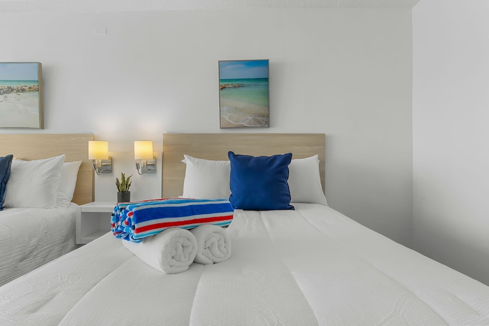 This property is great for a simple stay,no glits or glams, outdated for a simple stay is great. They don’t have a fob to enter or exit to the beach so you’ll have to stop to declare your room number and name to a gentleman before you can enter or exit to the beach from the property. Also they have notice to charge you is you stain a towel , great. Except I didn’t use their towel and left behind my own towel and the managing company PMI charge me $21 for a towel stain on my own washcloth that I left behind . This company has done this before so pretty much bring your own towel or they will charge you every time . Track their record and you will see how many charges people get from PMI. You can rent here just don’t do it with management company PMI, that is their practice.