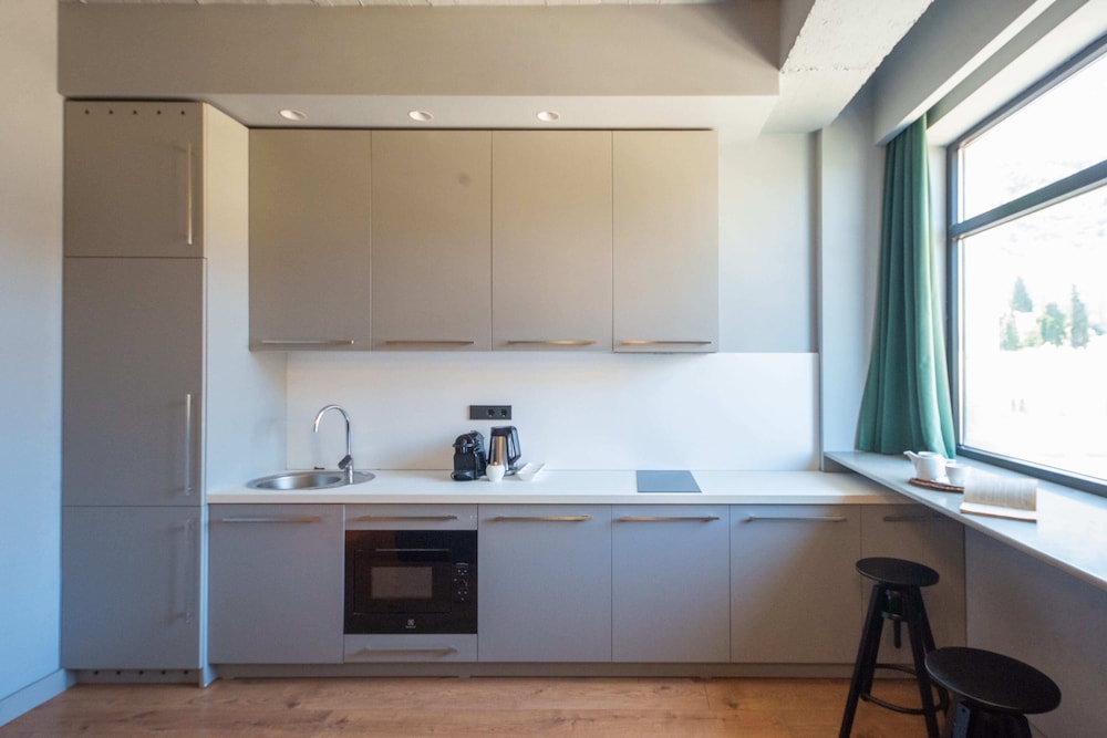 Our five stylish guestrooms feature fully equipped kitchens complete with refrigerators and stovetops, allowing you to indulge in home-cooked meals whenever you desire.