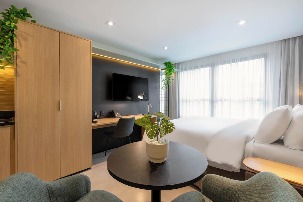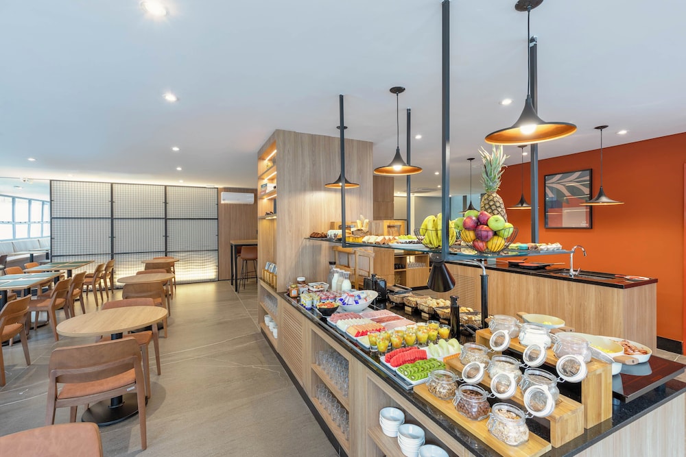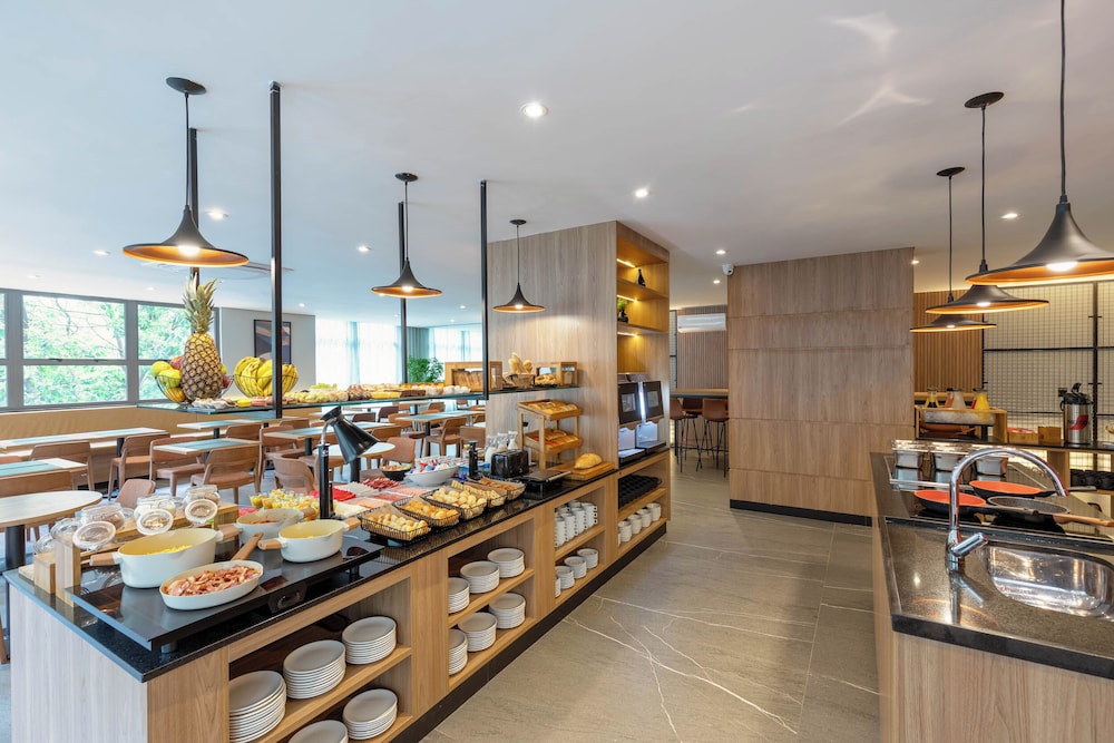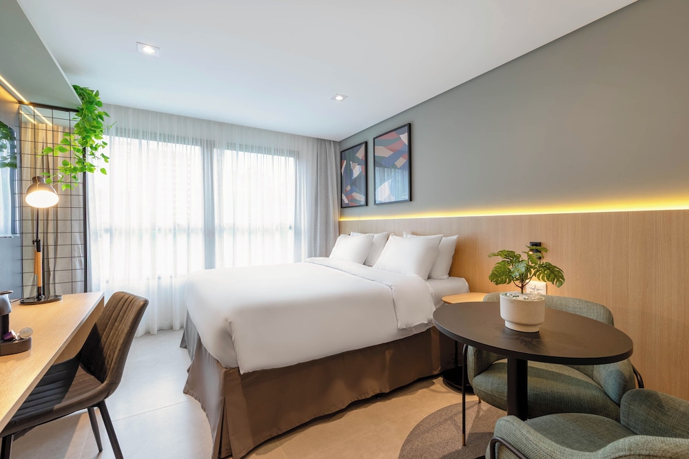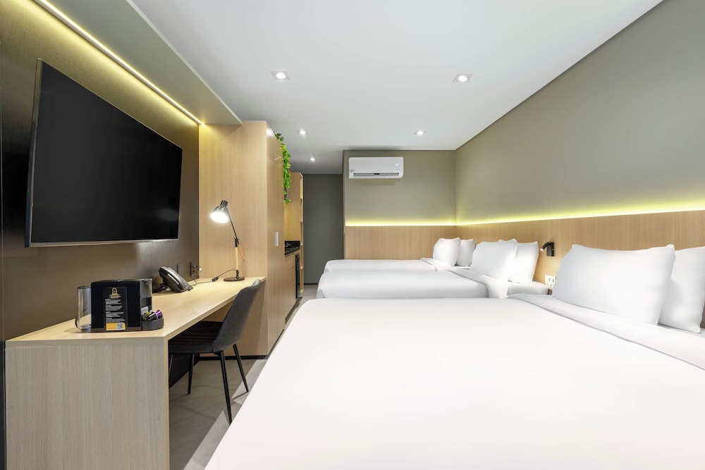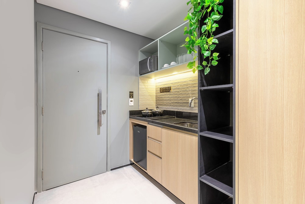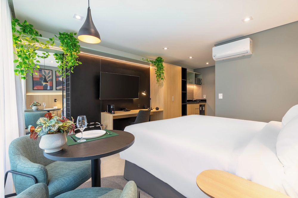 Hotel novo com quartos amplos e modernos. Atendimento excelente! Todos os funcionários são muito prestativos e simpáticos. A opção de cozinha é ótima porque te dá mais flexibilidade para fazer as suas refeições. Café da manhã muito bom!