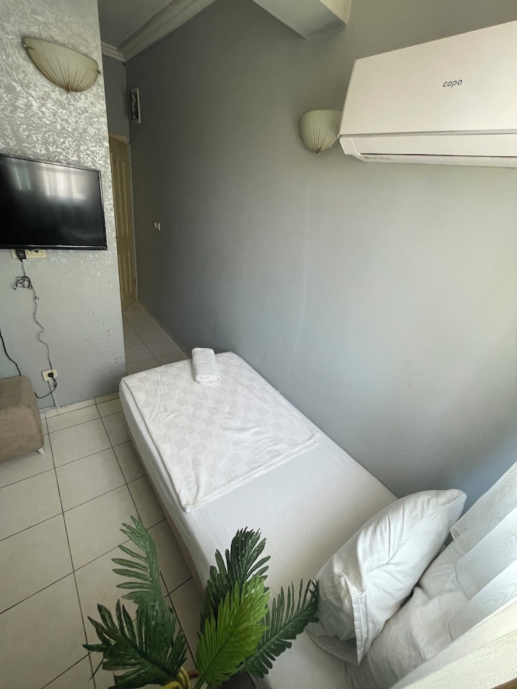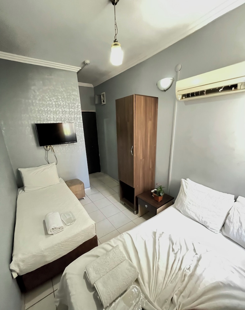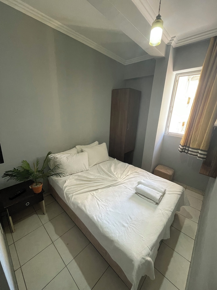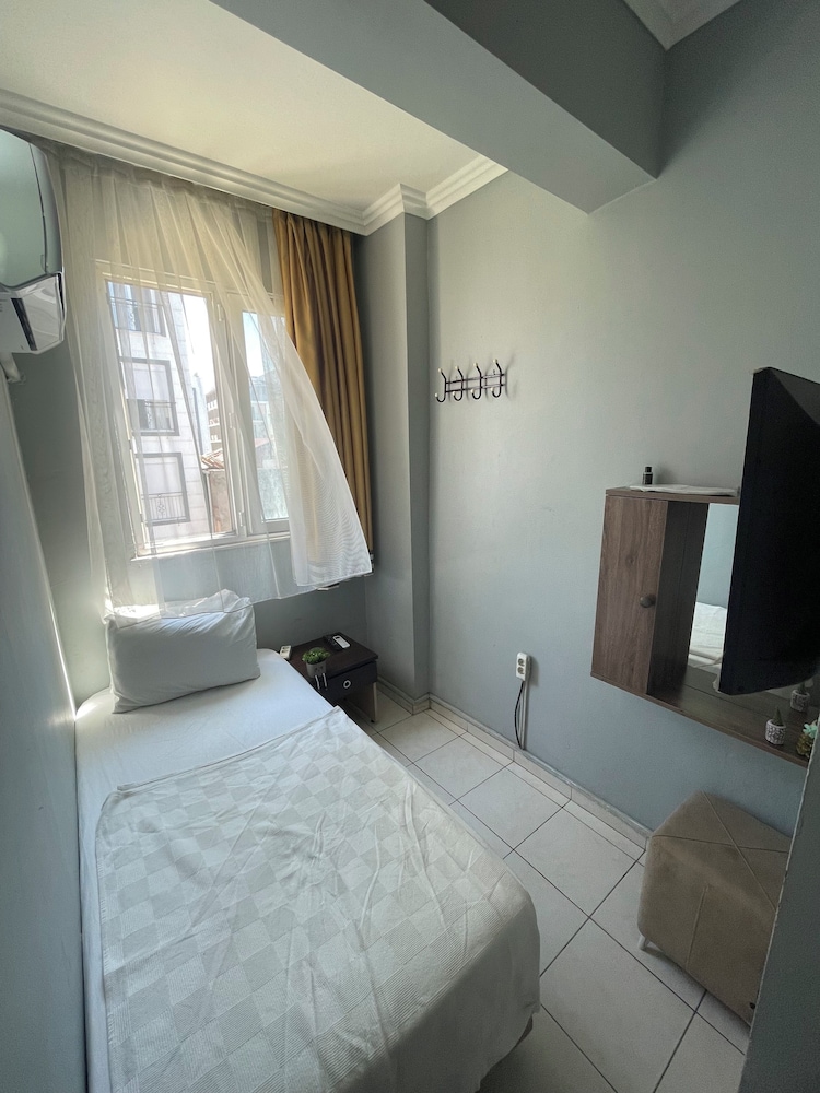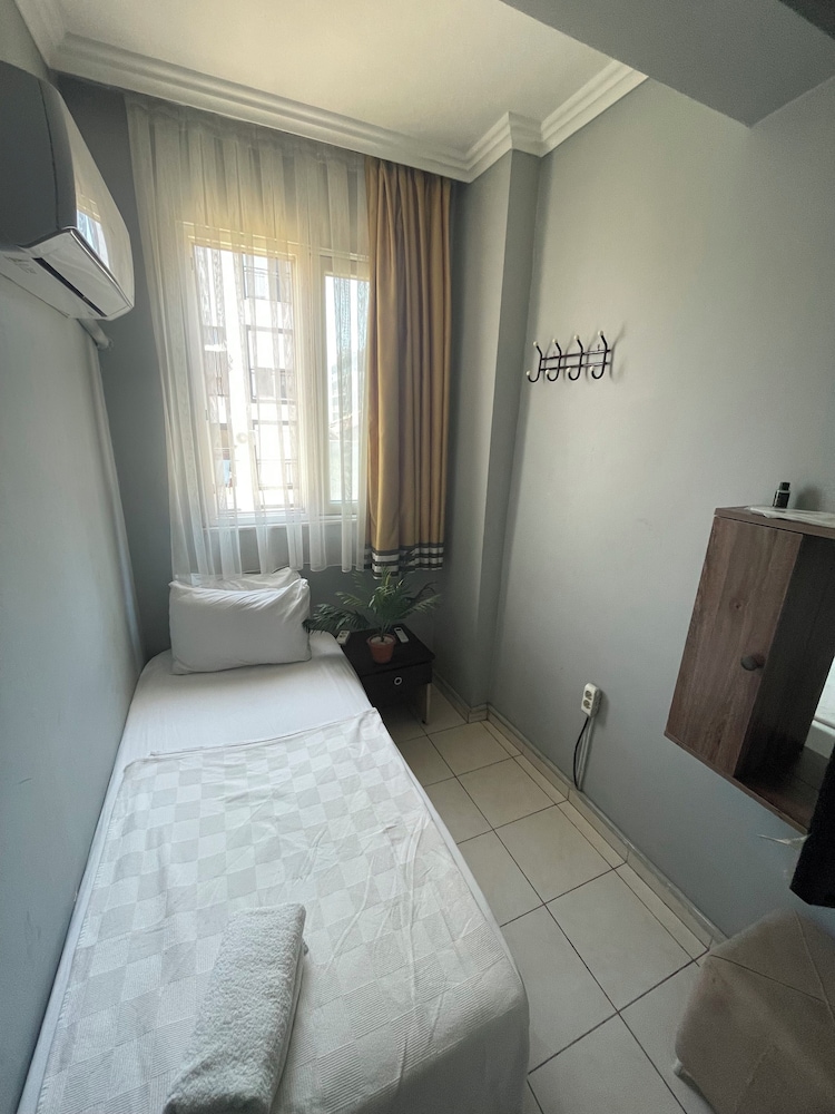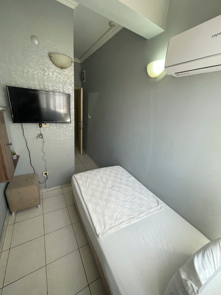 öncelikle oda bodrum gibi bişy karanlık fotoda banyosu güzel görünüyordu burda çok kötü ve sürekli sesler duyduk koridordan geçene uyandık dışarda konuşulanları bile duyduk ses yalıtımı çok kötüydü ilgisizlerdi o odayı insan vermeye utanır yani
