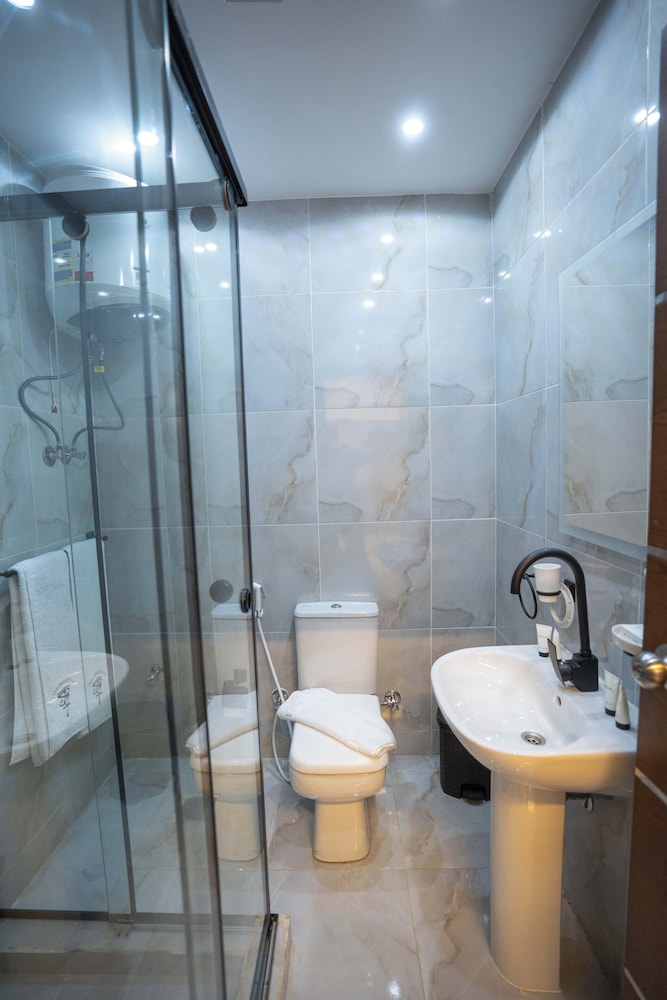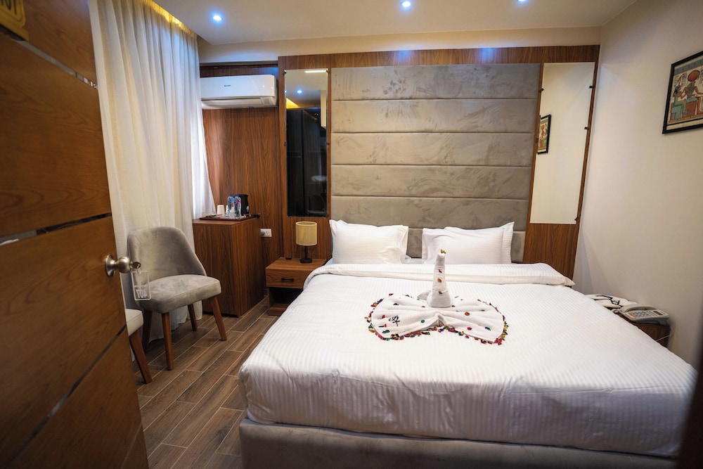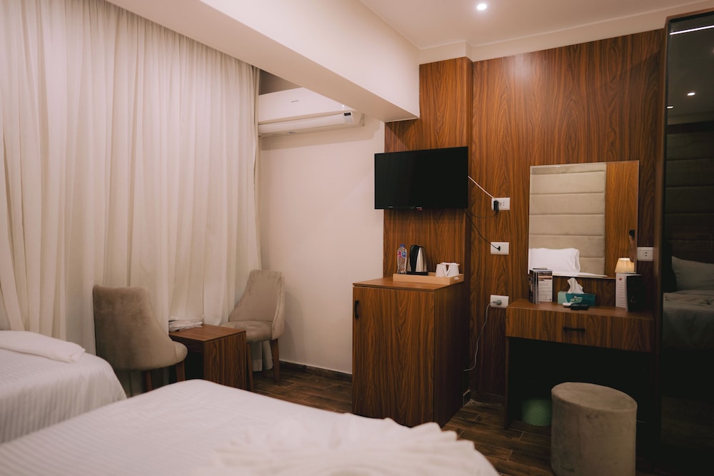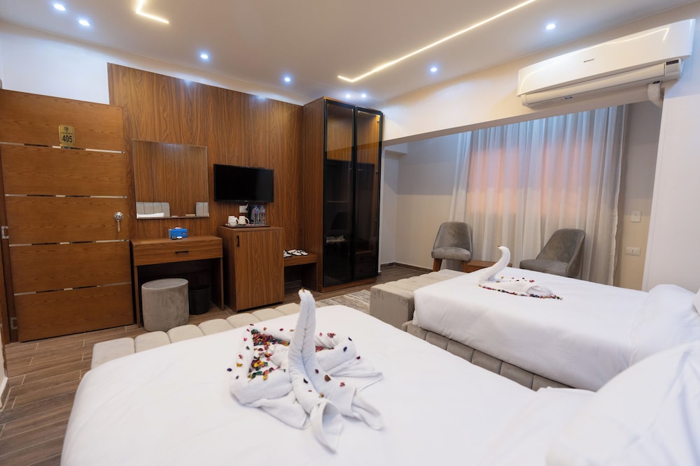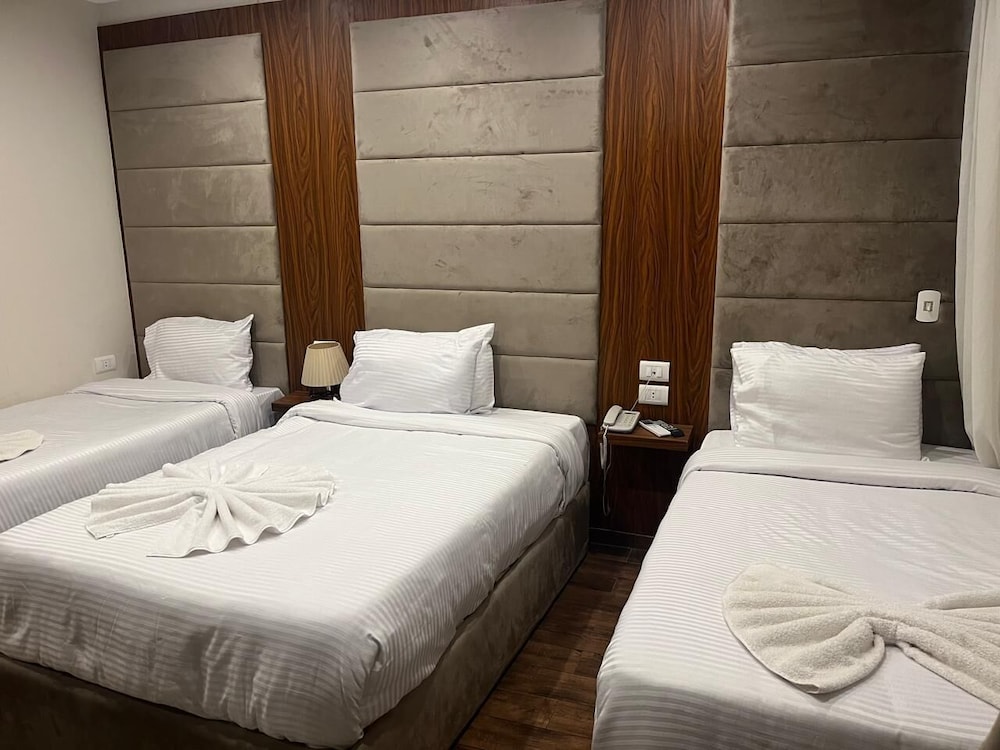Our stay was great! The hotel staff helped us so much with things like taxis, excursions, directions, room service, and assisting with our special requests. We especially enjoyed assistance and service from Nada and Turyck at the reception desk, and Arman in the rooftop restaurant. The restaurant service was great, and they also delivered to our room. The Pyramids of Giza light up the view from the rooftop! The room was clean, maid service was great upon request, and the restaurant was kept immaculate! There are a couple of pharmacies and several stores within walking distance. We even found a business around the corner to do our laundry. Can't beat the convenience!