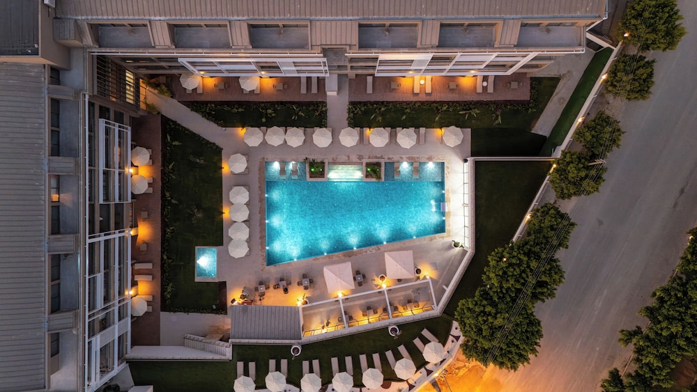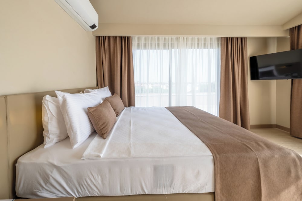 New aparthotel has fabulous pool area. Lovely and clean. Only negative was the irritating loud piano style pool music at 9.30 in the morning that could be heard on the balcony and in the room if the doors were open