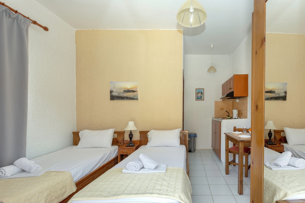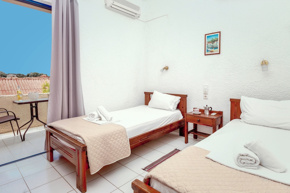 Stayed for three nights. Staff was very friendly, easy check in. Great location next to mountain and beach. Good place for a climb to the lera cave or longer hike to katholiko bay and monasteries.