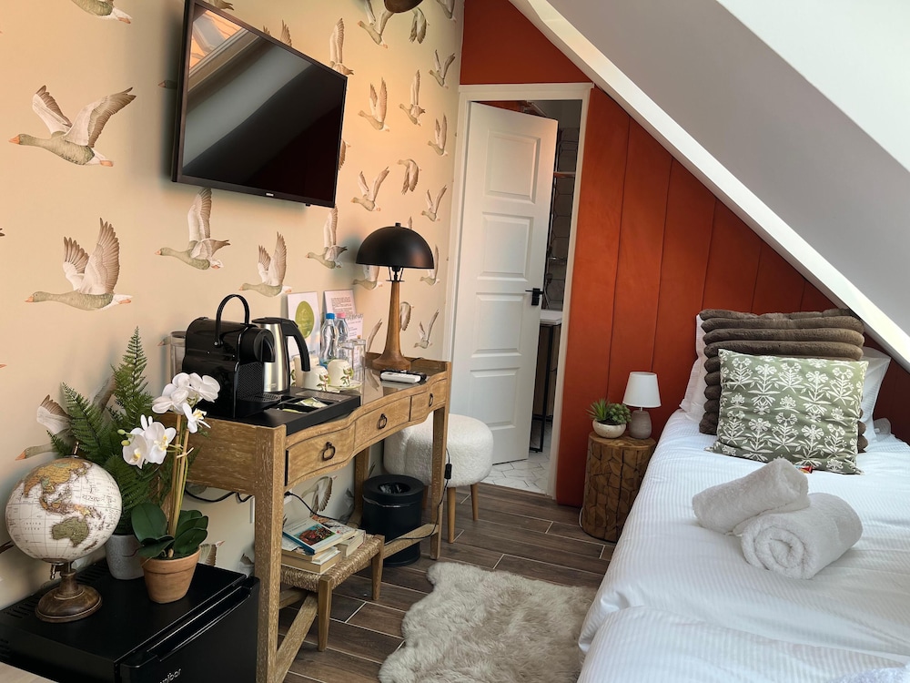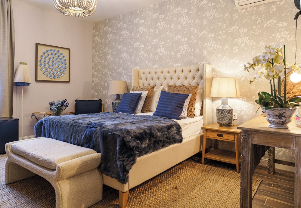 Each of our 14 guest rooms is uniquely decorated, offering a cozy atmosphere combined with modern amenities like minibars and Smart TVs, ensuring a comfortable stay tailored to your preferences.