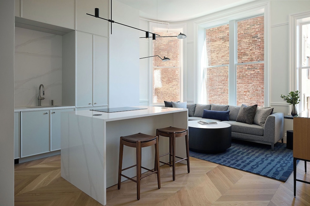 Indulge in one of our 19 thoughtfully designed guestrooms, each featuring a fully equipped kitchen with modern appliances. Enjoy the comfort of home with amenities like a 50-inch flat-screen TV and complimentary wireless internet access.