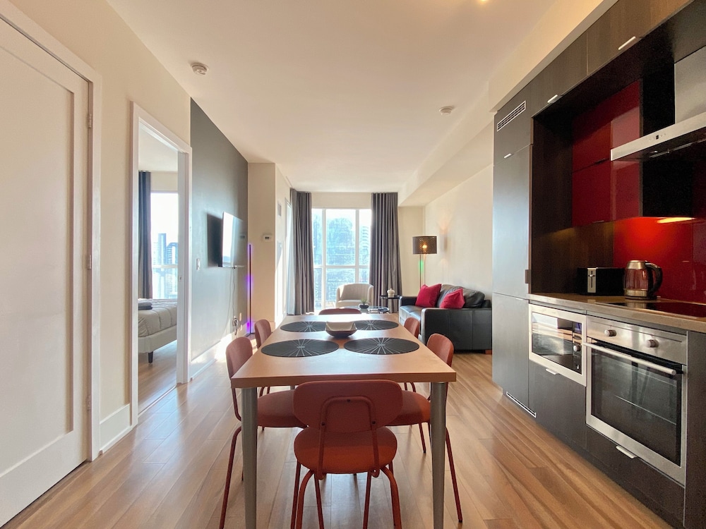 Nestled steps from the renowned CN Tower and the bustling Metro Toronto Convention Centre, you have instant access to city attractions such as Rogers Centre and TIFF Bell Lightbox, ensuring an unforgettable urban adventure.