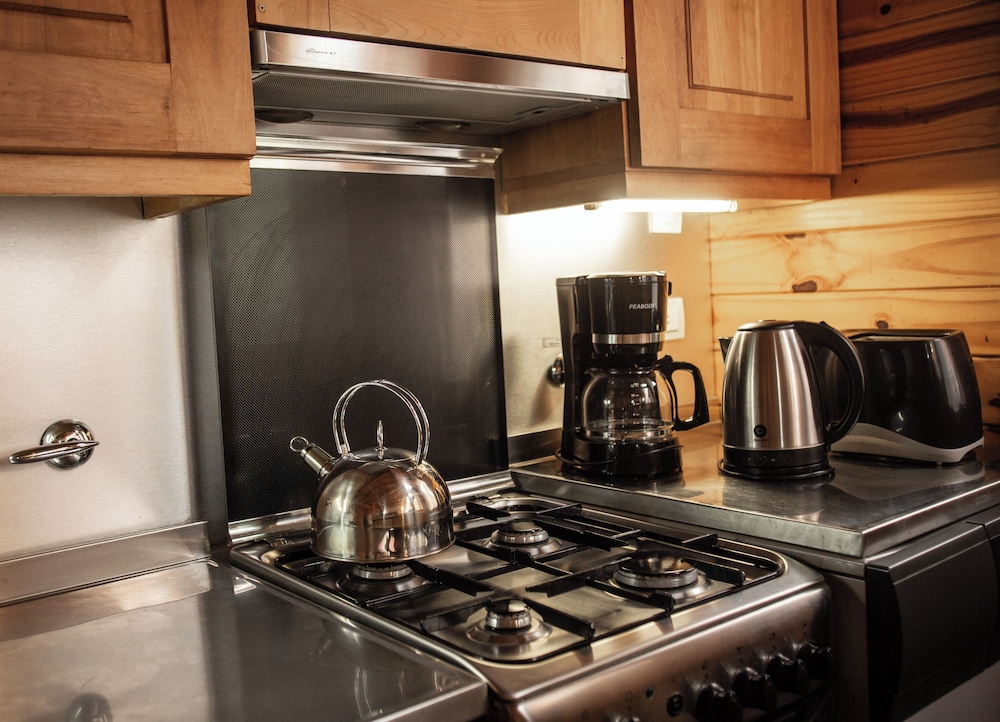 Indulge in our eight well-appointed guestrooms, featuring cozy fireplaces and heated floors. Each kitchen is fully equipped with modern appliances, ensuring you feel right at home.