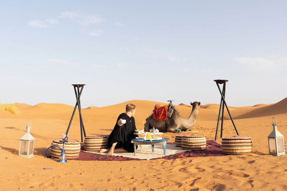 Discover the unique charm of Original Desert Camp in Merzouga, where the spectacular Erg Chebbi dunes await just steps from your door!