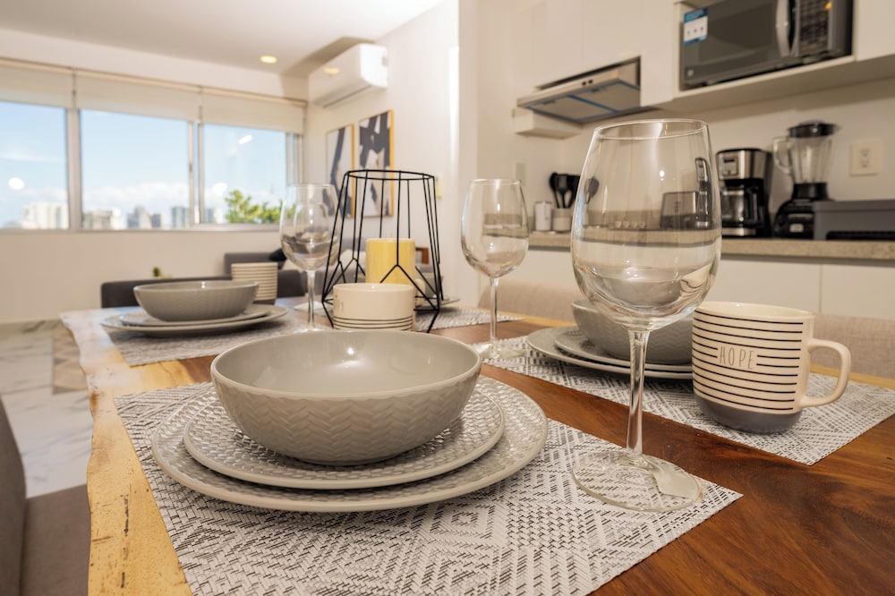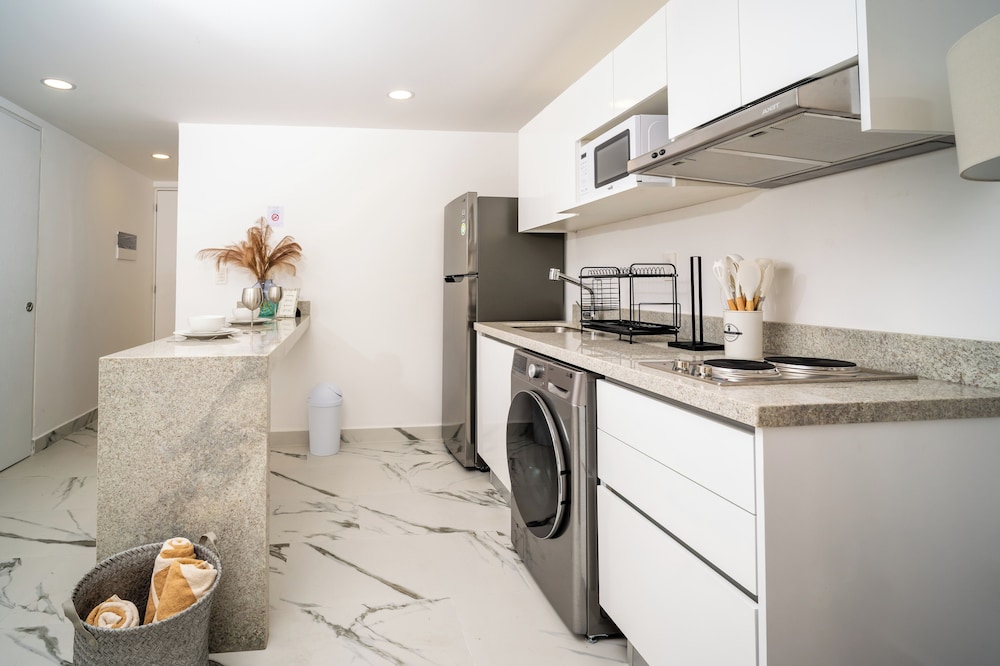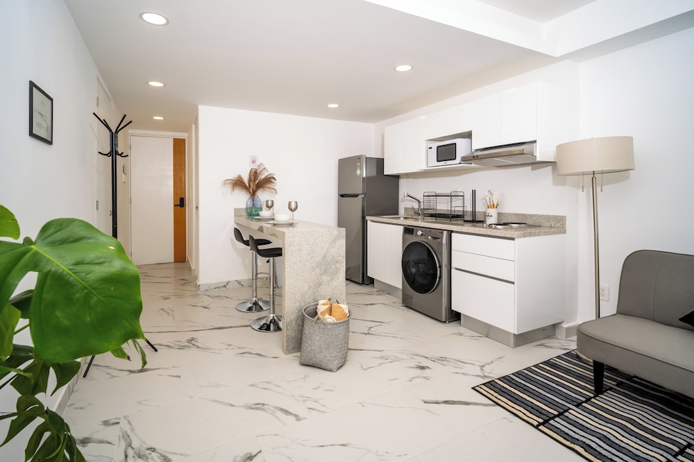 En general fue una buena experiencia y muy buen precio por valor. El staff es muy atento y servicial en la llegada y durante la comunicación antes, durante y después. El apartamento estaba bien, pero recomendamos tener equipo básico de limpieza como escoba y recogedor para que como huésped puedas mantener el espacio limpio constantemente. Solo recomendaríamos prestar más atención al edificio en general. Había daños visibles de humedad en el techo del pasillo de nuestro piso, y se escuchaba agua corriendo por los techos en las noches. El ascensor estaba en mantenimiento al momento de la llegada. El plus de la estadía fue el guardia de seguridad del edificio, quien siempre estuvo disponible para ayudarnos, así que muy agradecidos por su atención.