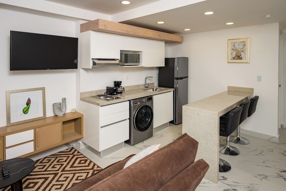 We had a one week vacation in Cancun and we stayed at this gorgeous property. The rooms were spacious, dining area was also nice. There are AC in all rooms and living room area. Overall, it was a nice experience for us.