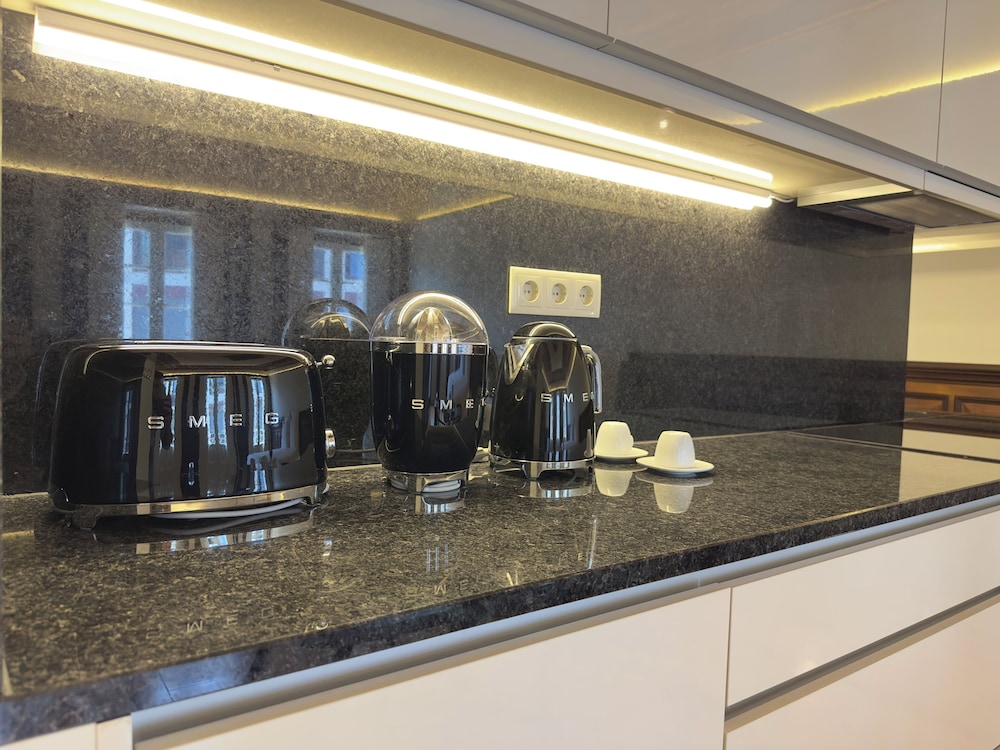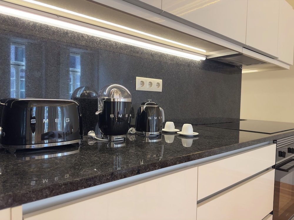 Fully equipped kitchen, very clean and comfortable. Lacking closet space, apartment needs more closets. Otherwise great place in an amazing location.