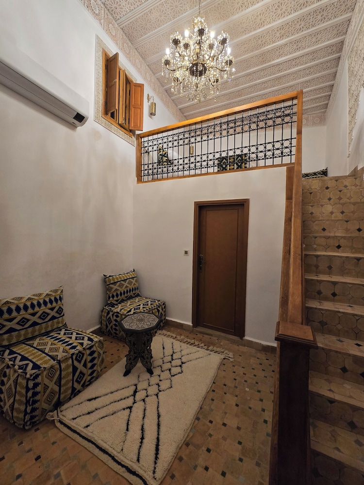 We stayed in the room with a terrace from November 11th to 14th. Although the surrounding establishments aren't very pleasant (a large metalworking shop, a small cemetery, and a shabby stable on the back hillside), it's a wonderful place. It's worth closing your eyes and letting yourself be carried away by the atmosphere. It's very well located (2 minutes from a gate to the Medina), making it very convenient to reach by car. The room was lovely, clean, and comfortable. The bathroom was comfortable, clean, and had everything we needed. The bed was very comfortable. The towels and sheets were of good quality. They have a restaurant with excellent food at reasonable prices. The breakfast is plentiful and impeccable. Among other things, we had a meat tagine with caramelized onions, which was one of the best things we ate in Morocco. The traditional soup was delicious; in fact, we had it several times. The staff is wonderful, professional, and attentive to every need. Mohamed was incredibly courteous and selfless, always smiling and dedicated to making our stay a five-star experience. Boubker was equally impressive, recommending a Medina tour with a guide named Mustafa, who turned out to be a passionate expert on the city. He made us fall in love with Fes, its history, anecdotes, and secrets—a truly 10-star tour. He also recommended Pedro, who took us to Volubilis, Meknes, Moulay Idriss, and several other sites on a beautiful day trip. Thanks to our stay, we will return to Fes.