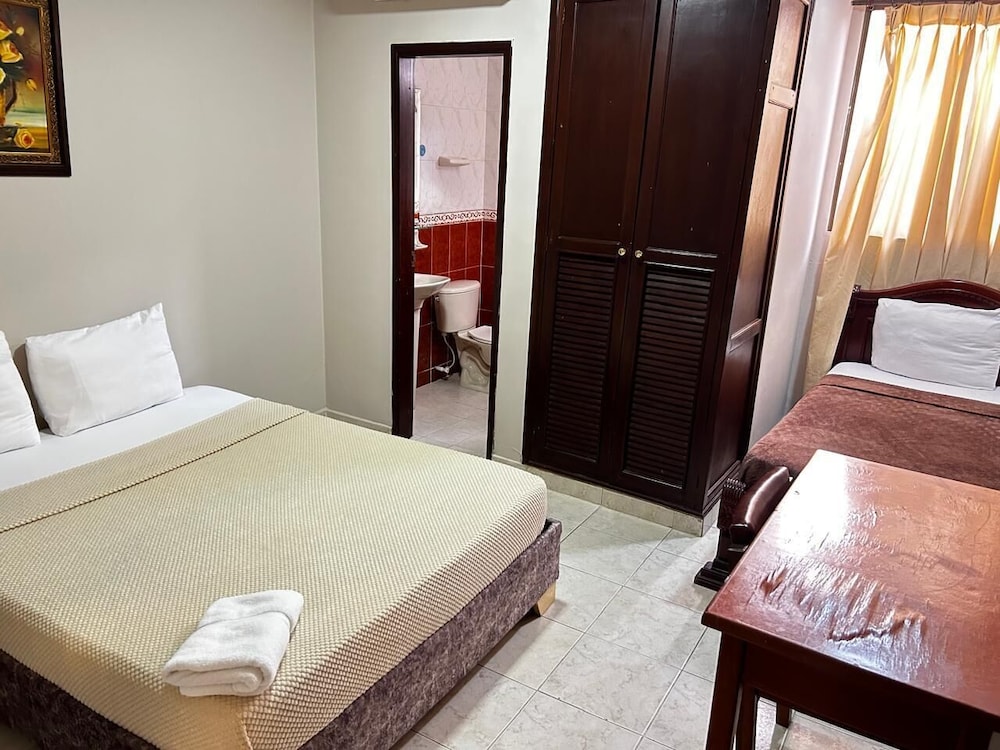 El baño está inhabilitado no usan toallas de manos y no hay tapete de pies, el suelo estaba sucio y cuando llegamos no nos habían dejado toallas , no hay secador de pelo , la mesa de noche estaba rota . La recepcionista no está informada que los colombianos o extranjeros que no viven en Colombia están exentos del IVA . Es importante enseñarlo con el pasaporte , me lo quisieron cobrar pero con la resolución y sello del pasaporte no se canceló . También me pareció los precios de las bebidas exagerados 4.000 por un agua 500ml. No lo recomiendo para nada
