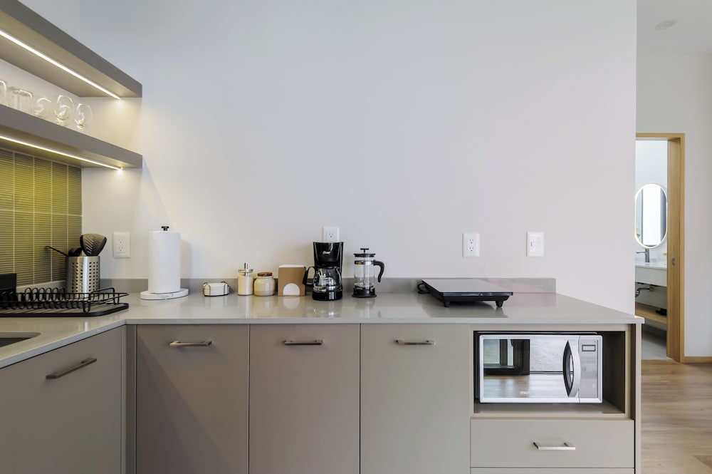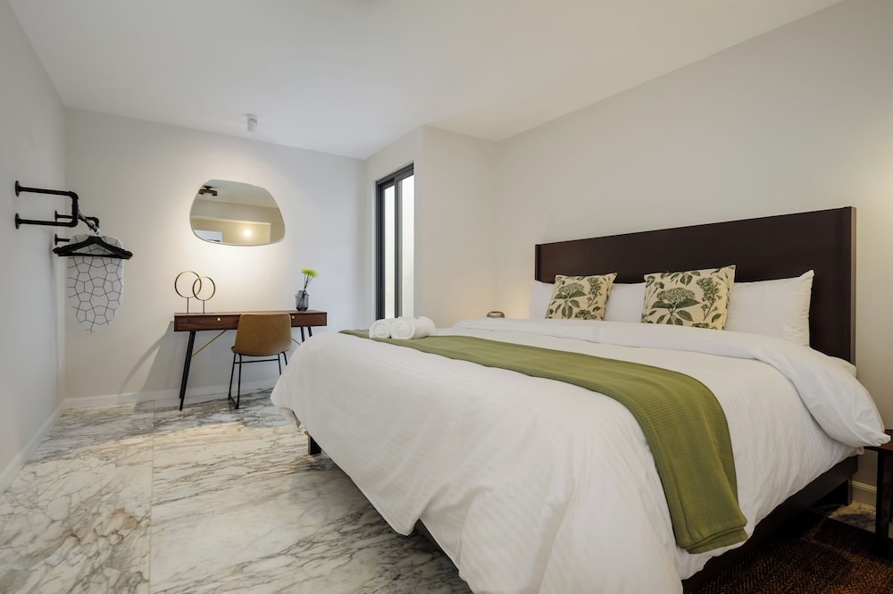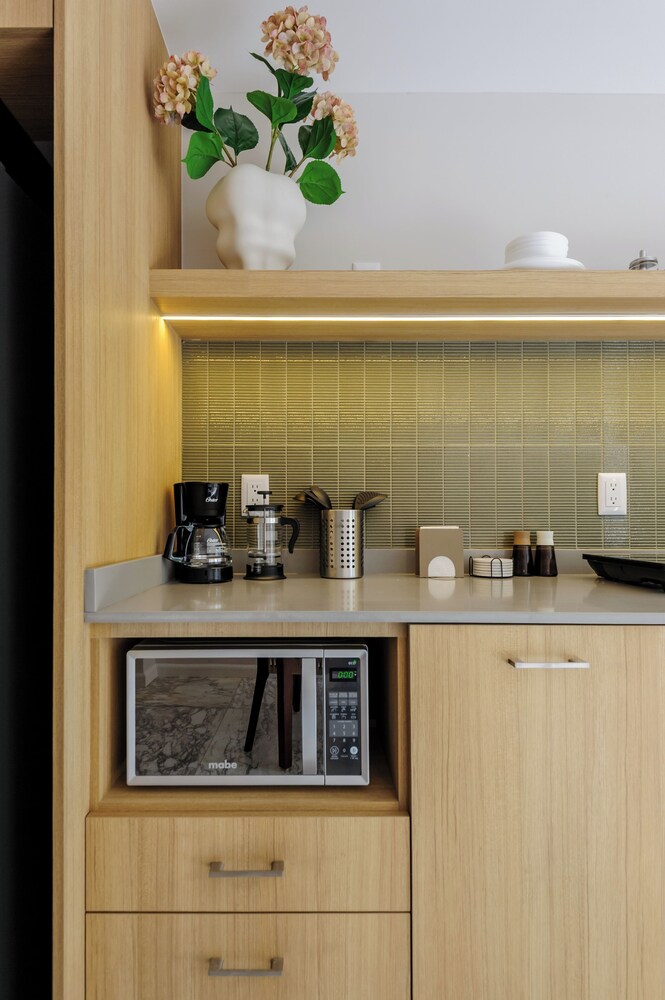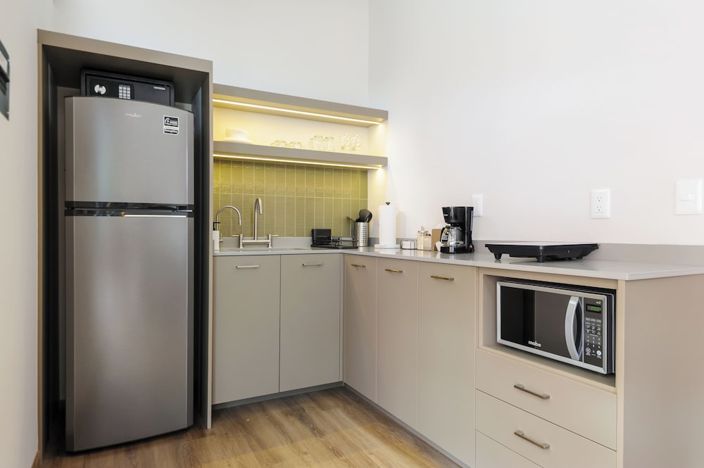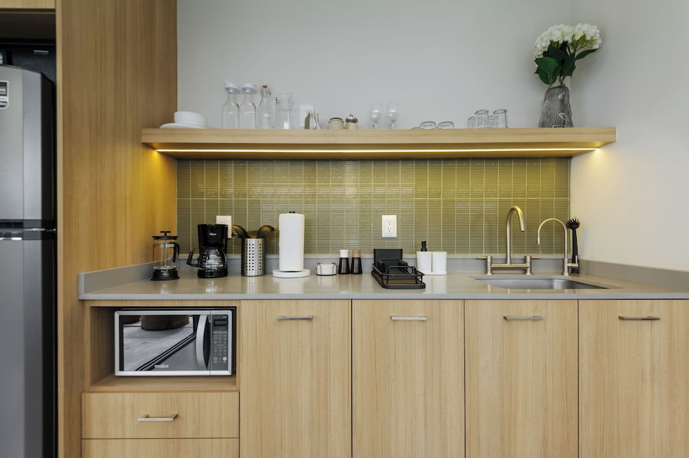 Our uniquely decorated guestrooms feature kitchens equipped with stovetops and microwaves, perfect for preparing your favorite meals. Enjoy restful nights on premium bedding and relax on private patios surrounded by the city's lively atmosphere.