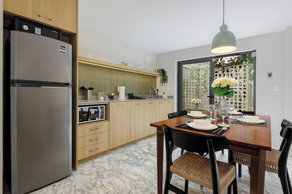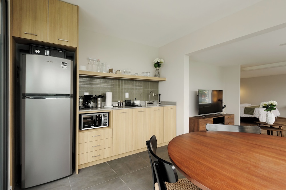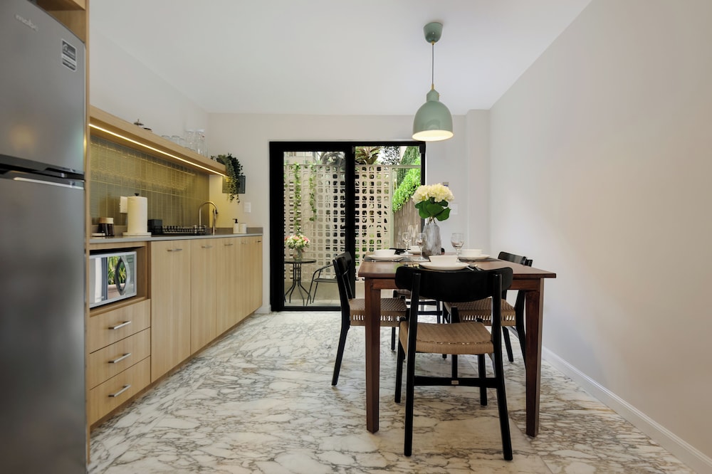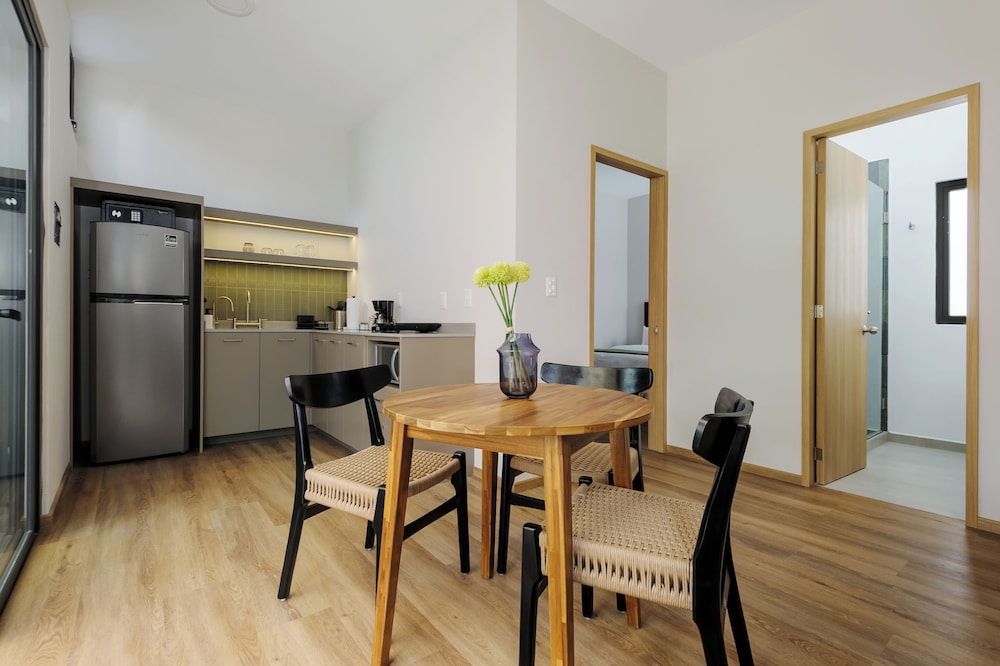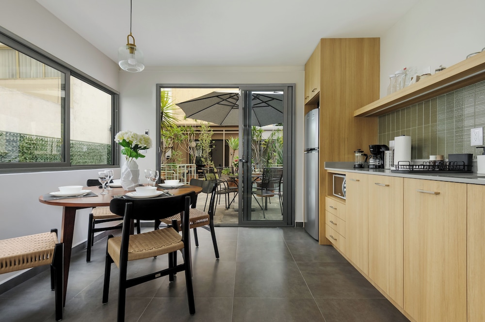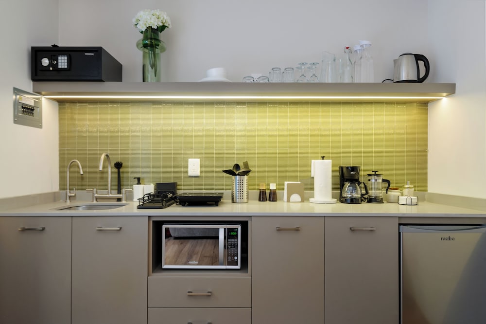 Our uniquely decorated guestrooms feature kitchens equipped with stovetops and microwaves, perfect for preparing your favorite meals. Enjoy restful nights on premium bedding and relax on private patios surrounded by the city's lively atmosphere.