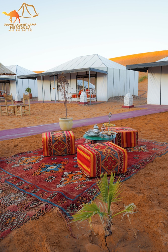 Nestled in the heart of Merzouga, Young Luxury Camp Merzouga offers an unparalleled experience with breathtaking views of Erg Chebbi.