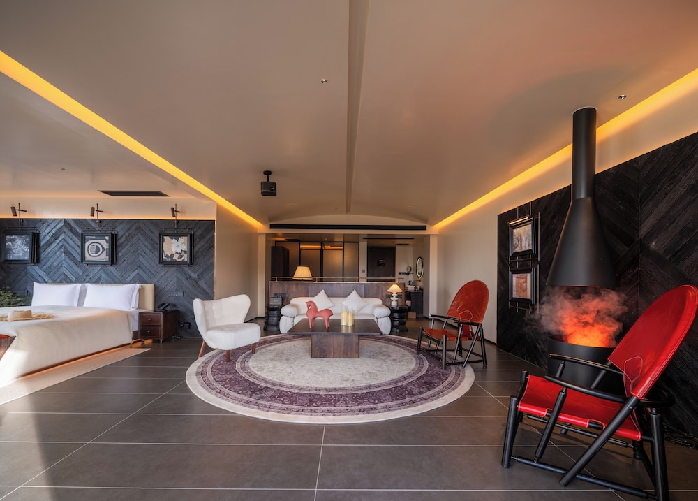 Indulge in one of our 52 uniquely decorated guest rooms, each featuring cozy fireplaces and modern amenities. Stay connected with complimentary Wi-Fi and enjoy entertainment from smart speakers designed for your pleasure.
