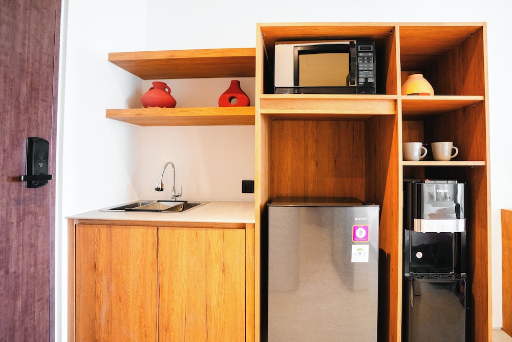 Choose from 18 individually decorated guestrooms, each featuring private balconies, refrigerators, and 52-inch Smart TVs for your entertainment. Enjoy the convenience of a communal kitchen and a rainfall shower for a refreshing experience.