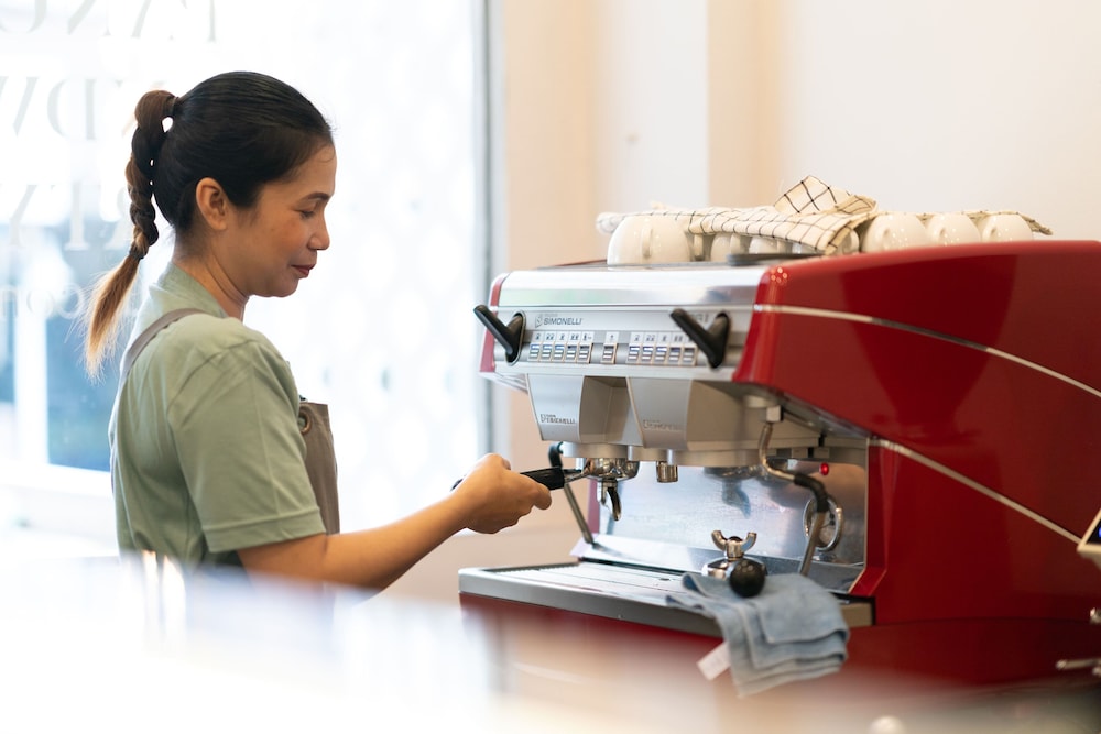 2) Friendly staffs at reception & The Verandah Cafe.