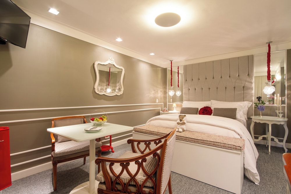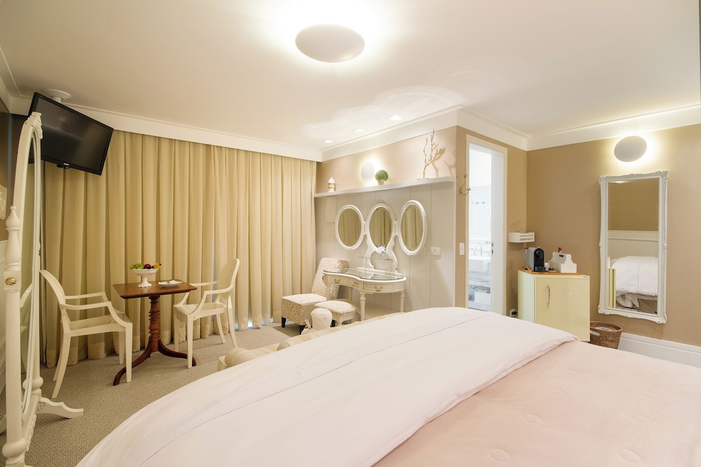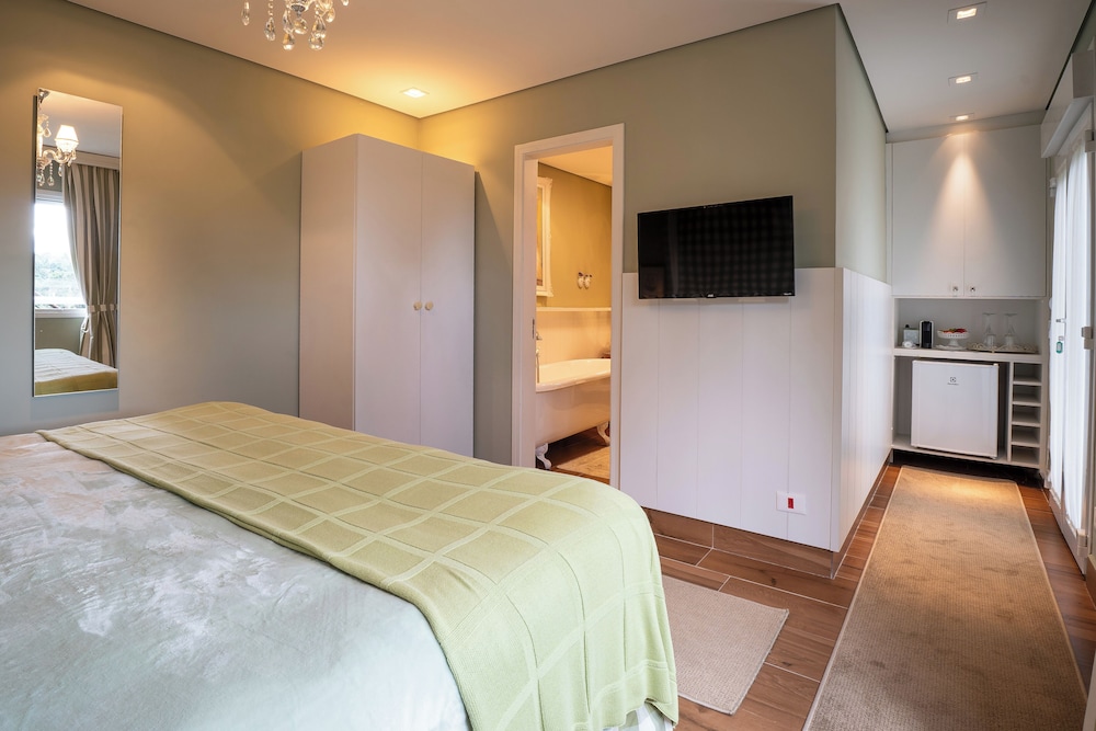 Fiquei no quarto Madrid. O colchão da acomodação é excessivamente macio, sendo desconfortável até mesmo para pessoas leves, pois afunda em demasia. O quarto não dispõe de ar-condicionado e nem de calefação, possuindo apenas um aquecedor de chão. Não proporciona conforto térmico. A pousada fica distante do centro, e o acesso é por rua de terra, o que não é ideal em dias chuvosos. A equipe é atenciosa e gentil. O café da manhã é servido a la carte, sem muitas variedades. O espaço do café da manhã é restrito e tem que ser agendado o horário pretendido no dia anterior. Estacionamento com apenas 4 vagas, sendo necessário serviço de manobrista.