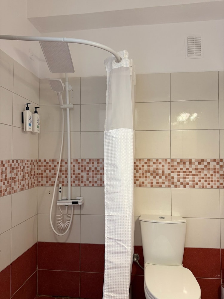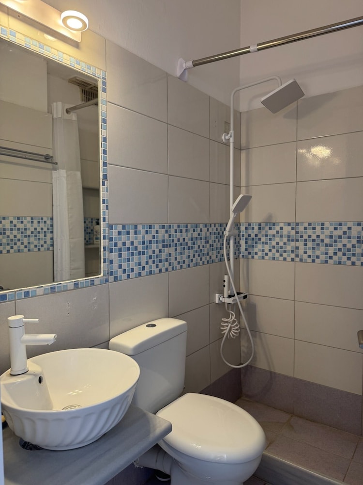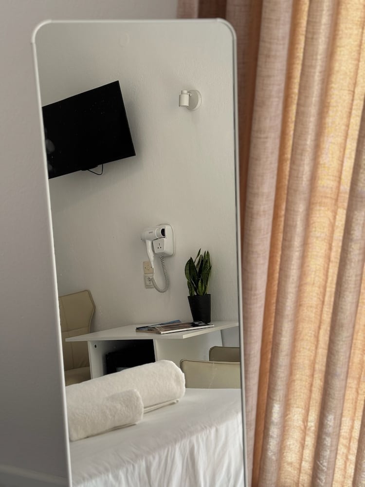 Hotel bonito, muy bien ubicado, la habitación es amplia y cómoda, el baño está bien, pero no hay cortina así que se moja un poco. La cama es muy cómoda. Todo muy limpio, pequeño balcón con tendedero.