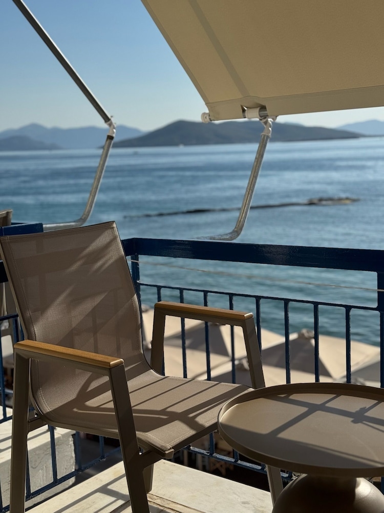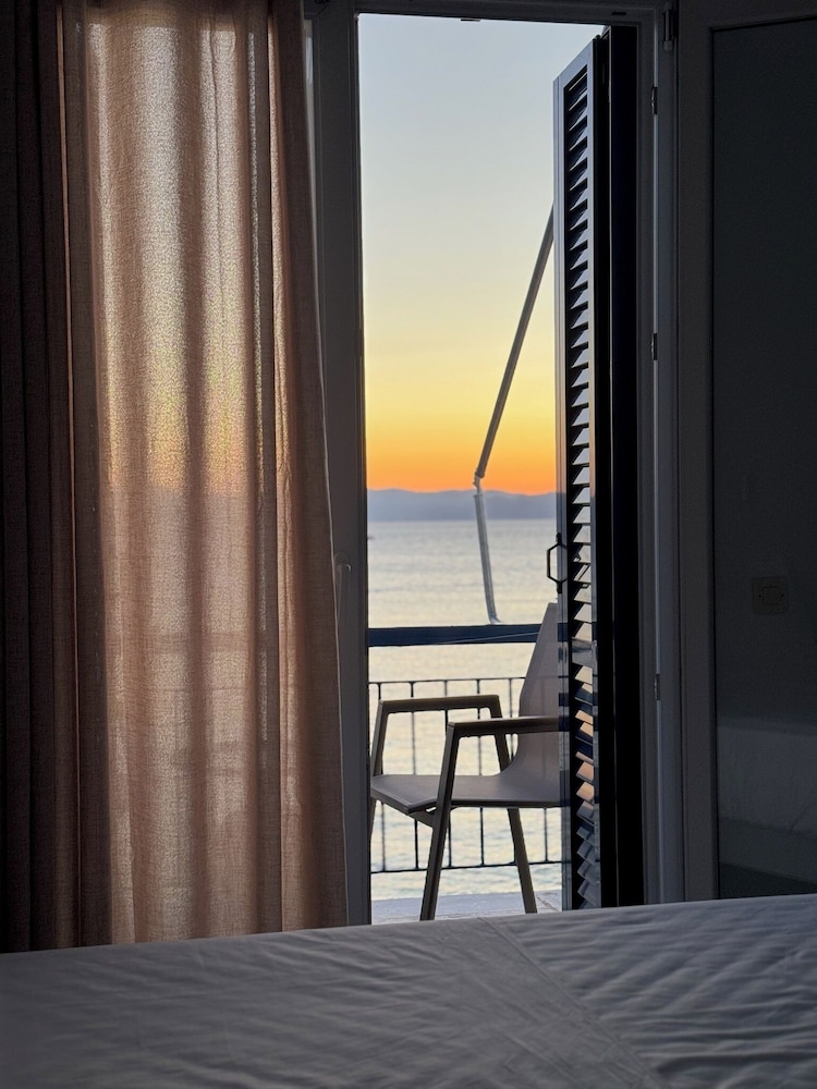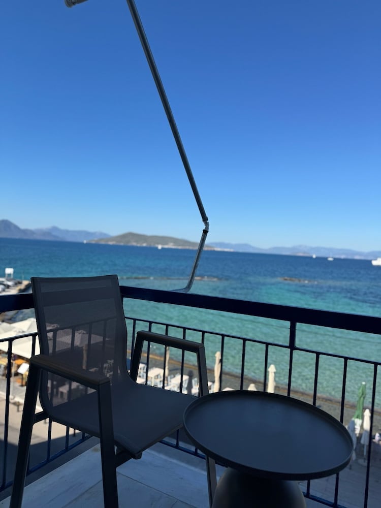 Hotellets beliggenhet er perfekt – rett ved sjøen og kun noen minutters gange fra havnen. I tillegg er det bussholdeplass rett i nærheten, noe som gjør det enkelt å utforske resten av øya uten bil.